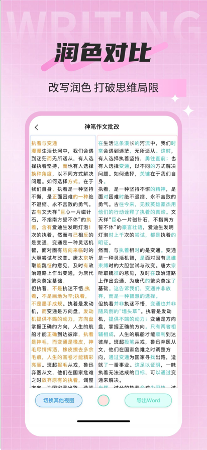 神笔作文是一款为中小学师生提供的专业高效作文批改工具,每月累计批改量超百万篇,用实力彰显专业度!支持作文拍照光速上传,AI 智能批改、精准点评、优质润色、针对性建议一站式配齐,轻松搞定语文作文、英文作文批改难题。批改结果详尽全面,指出作文的亮点与不足,给出可行的优化方向,搭配丰富的教师教学辅助工具与学生学习工具,全方位满足需求。 产品覆盖教师、学生、家长三端,涵盖小学中学高中,包括日常教学批改、自主练习提升和家庭辅导反馈。支持网页端、APP、小程序等多种使用形式。 神笔主要功能 (一)智能批改+专业润色:AI 赋能精准提分 全维度批改:支持拍照上传、自动裁剪、连拍等便捷操作,一键完成错字标点修改、病句梳理、结构立意诊断。 魔法级润色对比:实时生成「学生原文 VS AI 升格范文」对照,课堂展示极具冲击力。例如 “今天开心” 可优化为 “阳光吻过发梢,欢笑乘着风刺破云霄”,让学生直观感受文字升级的魅力。 班级批量高效批改:批量上传作文图片,快速匹配学生信息,AI 秒级完成批改。 班级作文数据化分析:自动生成雷达图,涵盖「定量分析」「定性分析」「归因分析」「教学对策生成」等专业报告,并提供练习题与全班好句整理导出功能,助力精准教学。 (二)多功能教学工具:减负增效好帮手 跨学科内容生成:提供主题或大纲,可快速生成高质量跨学科教学内容,丰富课堂素材。 个性化学生作文评分评语:输入学生优缺点、表现及期望评语,AI自动生成精准贴合、自然真挚的专属评语,告别重复撰写。 智能教案设计:助力教师完成教案搭建,优化教学流程,大幅提升教学效率。 听写默写智能批改:紧扣单元同步进度,涵盖生字表、词语表、识字表、课文填空等,支持个性化选择听写范围;上传学生作答结果后,AI自动勾画错字,生成正确率分析、易错字统计。 (三)作文写作助手:解锁创意写作 写作思路快速搭建:提供扩词联想作文素材、全文结构规划等功能,生成高质量作文,快速打开写作思路。 全文定制化创作:支持作文、日记等多种文体创作,生成原创不重复的高质量范文,为学生提供合规参考范本。 应用场景 学生提升:自主完成作文批改、润色建议、写作思路,培养写作自信。 老师教学辅助:光速批量批改作文、活用 AI 教学工具、生成可打印的数据报告、一键发布作业并实时跟踪学情,大幅减轻工作负担。 家长辅导:实时查看孩子作文能力,减轻辅导压力。
