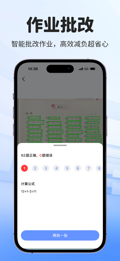 寒假辅导作业,血压飙升想暴走? 打开作业批改神器,让家长从此解放双手,孩子自学也能全对! 核心功能 【口算秒批】口算题拍照一扫,对错立判,错题自动标红,连竖式步骤都不放过,告别熬夜趴桌逐个查。 【作文精修】语文、英语作文一键批改,AI 逐句点评语法、标点、错别字,还能优化语句、提升文采,堪比私人作文老师。 【试卷还原】孩子错题想重做?拍照还原空白试卷,一键清除笔迹,不用手抄、不用复印,省时省力练错题。 【拍照搜题】难题不会教?拍照秒出详细解析,步骤清晰、思路明确,家长不用再为 “不会做” 尴尬。 【拍照翻译】英语单词、句子看不懂?拍照即译,发音、释义、例句全搞定,阅读理解、单词默写全辅助。 【错题本自动生成】批改过的错题自动分类收集,按科目、知识点整理,一键导出打印,复习只练错题,效率翻倍。 解放家长时间,培养孩子自主学习能力,这个假期,让作业辅导变轻松! 会员订阅说明: -订阅周期:周会员,月会员,年会员 -付款:用户付款记入iTunes账户 -取消订阅:如需取消订阅,请在当前订阅到期24小时以前,手动到在Apple ID设置管理中关闭自动订阅 -续订:苹果iTunes账户会在到期前24小时内扣款,扣款成功后订阅周期将延续一个周期 隐私政策 https://docs.qq.com/doc/p/a013618e1a903f5e68bdd06bcfe549b479134fd7 用户协议 https://docs.qq.com/doc/p/13877241d86d624125d6ca438c20525fbb70a235 会员服务协议 https://docs.qq.com/doc/p/96fad7f5e2380ec305eea1199e5e54c3eaa40b54