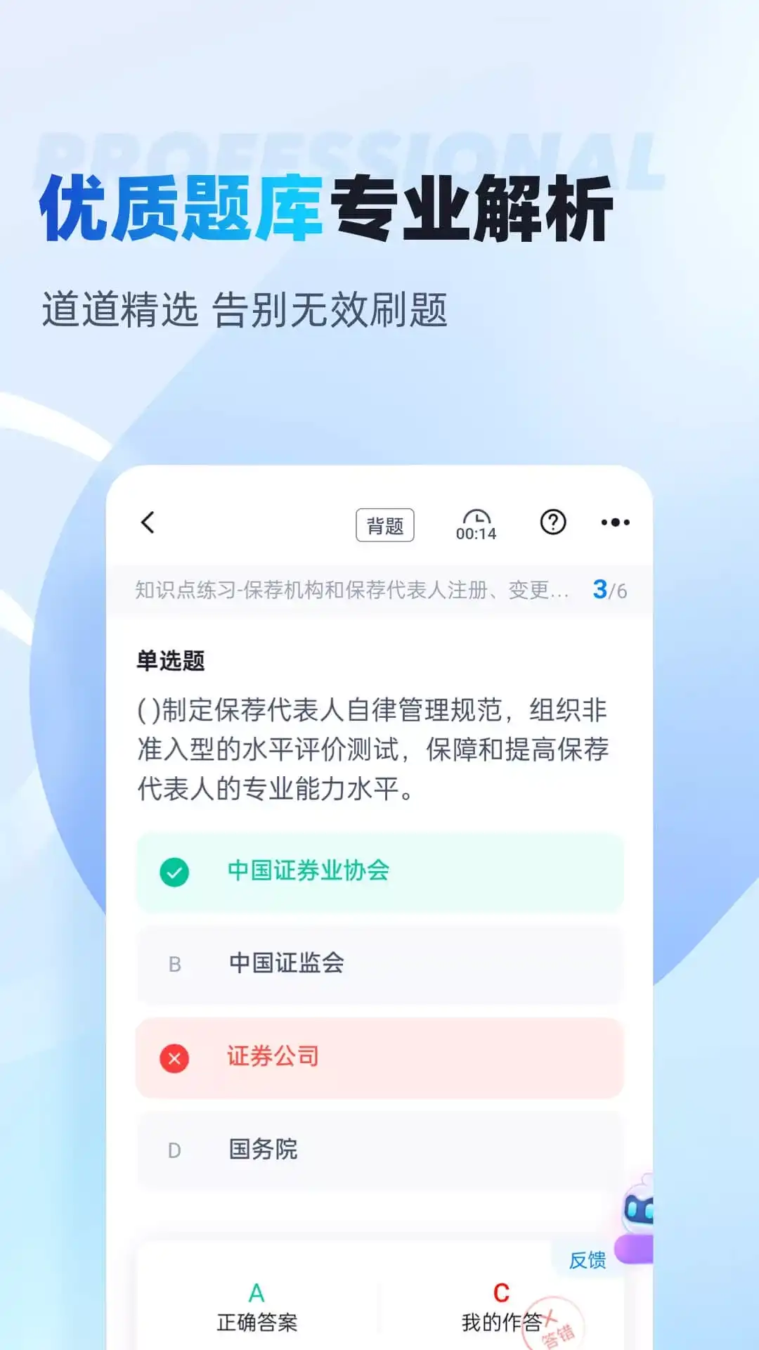 2026年证券从业资格考试力荐题库! 证券从业资格学员考证都在用的备考APP,马上下载去体验! 专为证券从业资格考试学员精心准备的考试配套题库,内容涵盖:精选题库、强师讲解、章节精讲、高频考点、高频易错、历年真题、冲刺密卷等多个模块,随时随地学习、省时省力备考。 考完证券从业资格后可以做什么? 中国证监会颁布了《证券业从业人员资格管理办法》,将证券业从业人员纳入统一的资格管理体系,中国境内从事证券业务的机构中从事证券业务的专业人员必须在取得从业资格的基础上取得执业证书,并赋予中国证券业协会行使证券业从业人员资格考试和资格管理职责。 证券从业资格考试设《证券市场基本法律法规》、《金融市场基础知识》2个科目。 【2026年证券从业资格考试 升级题库】 精选考题,超全考点,重难点解读,助力提升,效率通关! 【2026年证券从业资格考试 强师讲解】 证券从业资格考试研究专家视频解读2026年证券考试备考策略,强师效率教学,紧抓重难点! 【2026年证券从业资格考试 章节精讲】 根据证券考试大纲及官方教材修订补充,从基础抓起,章节考点课程精讲,更有对应章节练习题及视频讲解! 【2026年证券从业资格考试 高频题库】 证券从业资格考试高频考点+高频易错,深入解析,助你牢记常考、易错点! 【2026年证券从业资格考试 历年真题】 全套历年考试真题汇总,以题带点,加快掌握2026年证券从业备考规律! 【2026年证券从业资格考试 冲刺密卷】 全套证券从业备考试题,模拟实战考试练习,详细解读考点,掌握考试精髓,助你拿证! 【千万准题库用户陪您一起备考2026年证券从业资格考试,24小时来网校学习】 官方网站:http://www.wangxiao.cn 投诉/建议邮箱:800@wangxiao.cn