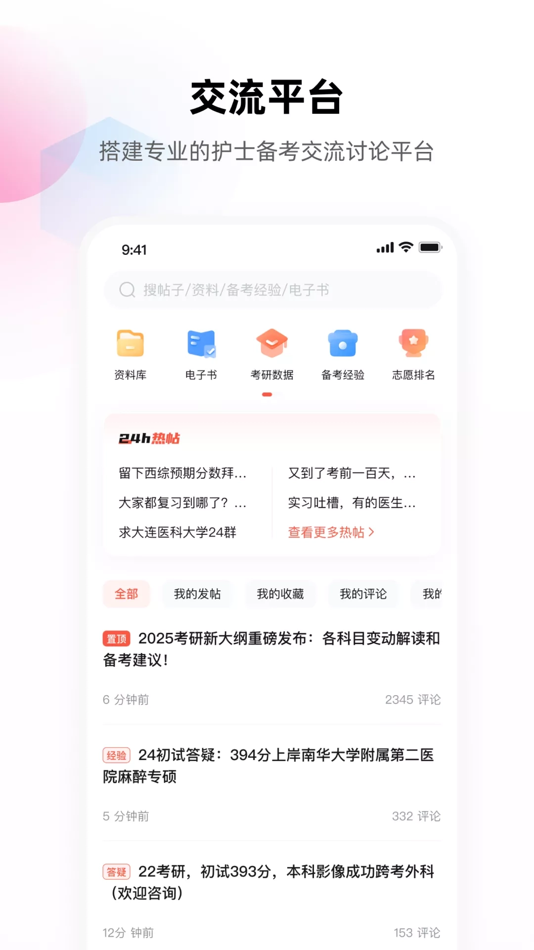 护资护考不再难,备考就上南丁园 南丁园——医护考试宝典免费题库 专注执业护士、初级护师、主管护师医学护理考试 具备护考题库、护考重点知识、护考精选课程、护考资讯 南丁园是智杰教育集团针对医学考试学生研发的一款执业护士、初级护师、主管护师等护理考试综合服务平台,致力为执业护士考试、初级护师考试、主管护师考试等医考学生提供优质备考题库+课程内容,特色内容包含护理搜题、护考题库、护考模拟试卷、护考公开课、护考专题课、护考精选课、护考资讯、护考预测卷、护考历年真题、护考资料图书等,备考复习内容多样,考生可随时随地学习,让备考学习更高效; 【南丁园-产品】 护考课程-免费学:品质护理免费公开课/专题课,边听边学,学习知识更丰富; 护考题库-免费练:精选章节专项考题题库练习,边练边背,考题知识更全面; 护考图书-轻松记:高分同步题、随身记、历年真题,边做边记,掌握知识更牢靠; 护考试卷-随时做:线上万人模考试卷、真题汇编试卷,边做边记,理解知识更巩固; 精选课程-重点学:优质师资力量,考点精选课程,助你考试顺利通过; 【南丁园-标签】 执业护士、初级护师、主管护师、医学考试、医考题库、护考题库、护理助手、医学搜题、医学题库、护考通、护士执业资格、护理驿站、押题库、护士资格考试 【南丁园-联系】 感谢您使用南丁园,使用中有任何问题可通过以下方式进行反馈: 微信公众号:智杰护考中心 客服联系方式:400-085-6607 官网:http://www.zhijie-edu.com