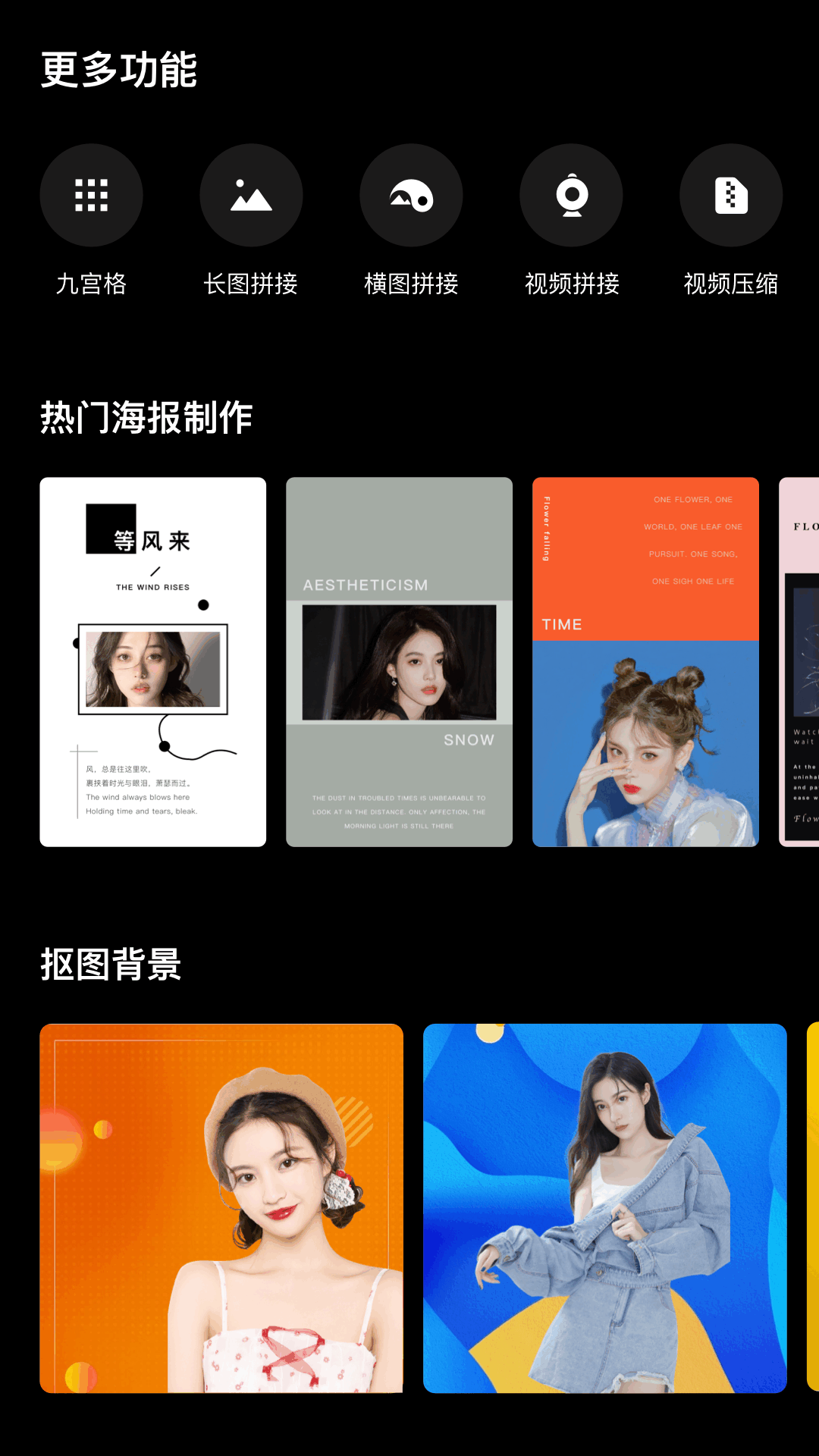 1. 智能抠图 专业抠图技术,采用最新AI识别算法,精准识别人像/物品,轻轻松松,就可以抠出完美效果。 2. 图片合成 把两个人P成合照?两张图片要合成一张?没问题!一键无缝合成,外有文字、贴纸、橡皮擦、轮廓线添加、混合溶图等多种功能,无论你想要什么效果,都能满足你。 3. 图片编辑 调整照片曝光度,裁剪图片,添加滤镜效果,对照片进行调色……功能应有尽有,轻轻松松,就能制作精美照片! 4. 证件照一键换底 轻松磨皮加美白,让你的照片美美哒,别人家的证件照,你也可以有!海量服饰不同风格,大小随你调节,男装、女装、童装等多套个性正装满足你各种场景所需~ 5. 超多模板可供选择 内置大量模板,各种节日模板、朋友圈分享主题、VLOG封面图等等都有,还有上百套优质背景图库及贴图,想要哪套换哪套!