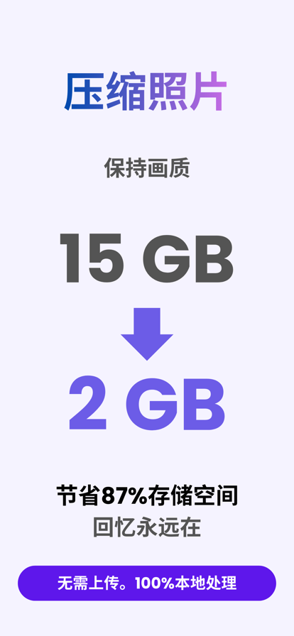 手机存储空间告急?动辄上百兆的视频无法发送?照片太大无法分享至微信朋友圈?别担心,视频照片压缩器将帮助您轻松解决这些烦恼! 这是一款专为手机用户打造的高效压缩工具,无论是日常拍摄的视频、珍贵的旅行照片,还是工作文件中的高清素材,都可以通过本 App 进行快速压缩,有效释放手机空间,提升设备运行效率。 【核心功能亮点】 • 无水印无时间限制:压缩过程无需担心添加水印或视频时长受限,真正做到自由使用。 • 本地处理,无需联网:所有压缩任务均在手机本地完成,无需连接网络,保障您的隐私与数据安全。 • 高效压缩,保留画质:采用先进压缩算法,最大程度保留原始清晰度,同时有效减小文件体积。 • 支持多种格式:兼容几乎所有主流视频和图片格式,如 3GP、FLV、MP4、MOV、MKV、AVI、JPG、PNG 等,使用无忧。 • 灵活参数调节:用户可根据需求自由设置压缩参数,例如图片尺寸、清晰度优先级等,实现个性化压缩效果。 • 一键管理更省心:压缩完成后可一键删除原始大文件,避免重复占用空间,简洁高效。 • 批量压缩更高效:支持多图/多视频批量处理,节省操作时间,提高效率。 【更多空间优化工具】 不仅仅是压缩,App 还集成了一系列实用的空间管理功能,助您从根源上解决“存储不够用”的问题: • 相册清理:快速识别并删除无用照片和视频,保持相册整洁。 • 相似照片清理:智能识别重复或相似照片,避免占用多余空间。 • 截图清理:快速筛选过期或无用的截图,一键清除。 • 视频分段:将长视频分割为多个短片段,更方便分享和存储。 • 文件归档压缩:将多个文件打包成压缩包,便于管理和备份。 Running out of storage space? Videos too large to send? Photos too big to share on WeChat or social media? Video & Photo Compressor is here to help! This app is your all-in-one solution for reducing file sizes without sacrificing quality. Whether it's videos, images, or other large files, you can compress them in just a few taps and save valuable storage on your device. 【Key Features】 • No watermark, no time limits • Offline compression — all processing happens locally on your phone. No internet needed, keeping your data secure • Advanced compression algorithms that preserve original quality while minimizing file size • Supports all major formats — MP4, MOV, AVI, MKV, 3GP, FLV, MPG, JPEG, PNG, and more • Customizable settings — choose compression priority: smaller size or better resolution • Preview results before saving • One-tap delete original files to save space instantly • Batch compression — process multiple files at once with ease 【More Space-Saving Tools】 • Album cleaner • Similar photo cleaner • Screenshot manager • Video splitter • File archiving and compression ========================== Compressor Pro Unlimited Subscription ========================== - Join Compressor Pro members, free to use all features, including all video & audio formats, ocr function, in addition, ads will be automatically removed. - Compressor Pro Unlimited subscription is billed monthly or annually at the rate correspnding to the selected plan. In addition, a one-time payment will be offered if needed, which is not one of the subscription plan. - Payment will be charged to Itunes Account at confirmation of purchase. - Subscriptions automatically renews unless auto-renew is turned off at least 24 hours before the end of the current period. - Account will be charged for renewal within 24-hours prior to the end of the current period, and identify the cost of the renewal. - Subscriptions may be managed by the user and auto-renewal may be turned off by going to the user's Account Settings after purchase. - Any unused portion of a free trial period, if offered, will be forfeited when the user purchases a subscription to that publication, where applicable. - Terms of use : https://www.jianshu.com/p/7b3c05310c93 - Privacy policy: https://www.jianshu.com/p/4a71bed09de0