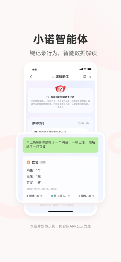 诺和关怀APP是一款可以同时连接诺和诺德胰岛素笔(诺和笔®6),动态血糖仪(CGM)及多品牌指尖血糖仪(BGM),并为其他可穿戴设备预留对接能力的患者服务平台。它从患者用药依从、血糖监测依从、饮食依从、运动依从及教育依从的五大视角,进行全面依从性管理,并提供直观动态的可视化分析报告,帮助患者居家轻松管理血糖。 【温馨提示】APP内提供的所有建议仅供参考,如有不适请及时就医或拨打120急救电话。 【免责说明】 为满足用户对自我健康管理的要求,诺和关怀特向用户提供推荐饮食方案和运动教学视频,但诺和关怀提供的服务不涉及任何医疗手段和用途,用户须根据自身的健康情况进行谨慎选择,因推荐饮食方案或任何运动视频而引起的一切风险、损害及责任等,由用户自行承担。