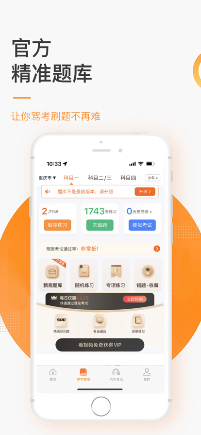 行业专家倾力参与,动态调整试题内容,针对考试精准练习,轻松通过考试!——车学堂是由人民交通出版社股份有限公司建设,为学员提供驾驶培训和试题练习的专业服务平台,是一款官方权威的驾考APP! 【产品特色】 1、2022驾考新规题库:涵盖小车、客车、货车、资格证、继续教育等题库内容,出题专家精心汇编考题解析,考驾照更轻松。 2、科一/科四专项练习:难题、易错题逐题解析知识点,巧妙记忆交通标志、交警手势,更有科目一、科目四考试技巧帮助记忆易错题。 3、专业的驾考网络教育平台,多终端同步,随时学习,学习进度自主把控,实时可查。 【VIP理论速成】 1、速成考题:出题专家帮您划重点,提炼驾考考题,节省学习时间。 2、考前押题:分析全国试卷,甄选驾照考试高频题,准确把握考试难点。 3、答题技巧:精心归纳考试口诀,助你轻松应对驾照考试。