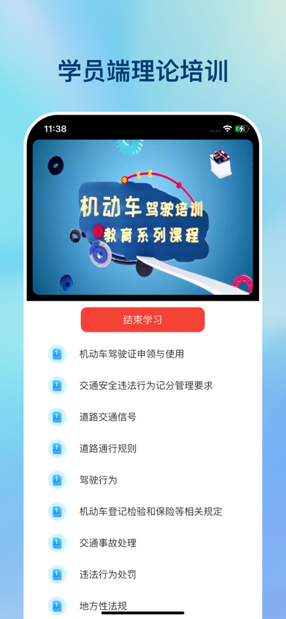 本APP是用于学车驾驶人进行安全教育的应用软件,经过教育学习,提升驾驶人的交通安全意识,有益于营造社会公共交通安全氛围.