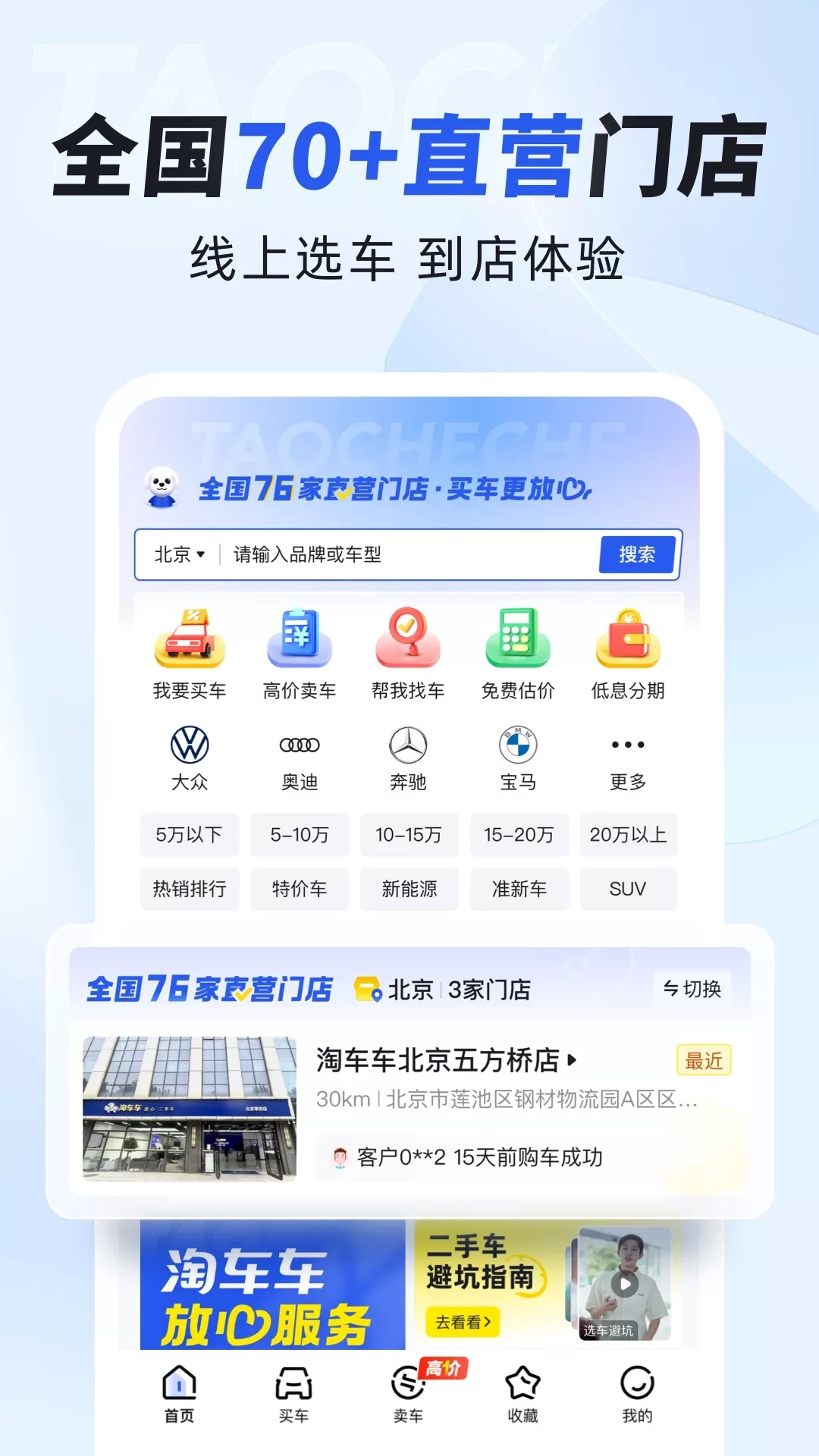 淘车车,让更多人买到放心二手车。 【放心买】 「门店直营·放心选」全国直营门店覆盖城市200+,统一采购,统一标准,统一品质。 「严格品控·放心开」专业化的检测体系,至高335项质量检测,质检报告随时看。 「售后无忧·终身退」1年或3万公里免费质保,重大事故终身包退。 「真车实况·放心买」每车必检,车况更透明,买车更放心。 「预约试驾·看实车」门店试驾看实车,满意再购车。 「在线订车·随时退」不满意随时退,买车更随心。 【放心卖】 「卖车快」估价精准,卖价高,最快当日成交。 「免费检」免费检测评估,赠送质检报告。 「不寄存」边开边卖,不寄存。 买卖二手车,就选淘车车。 ---------联系方式--------- 官方网址:http://www.taocheche.com/ 微信公众号:淘车车放心二手车 官方反馈微信号:taoche123tc 如有任何建议反馈,购车疑问,欢迎向我们吐槽。