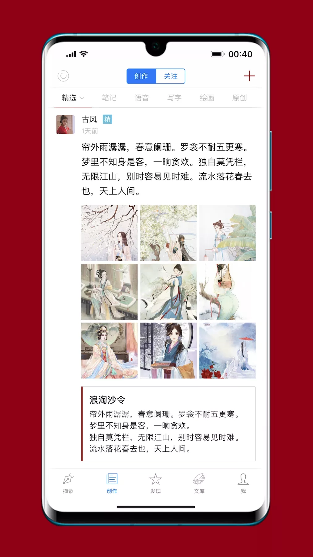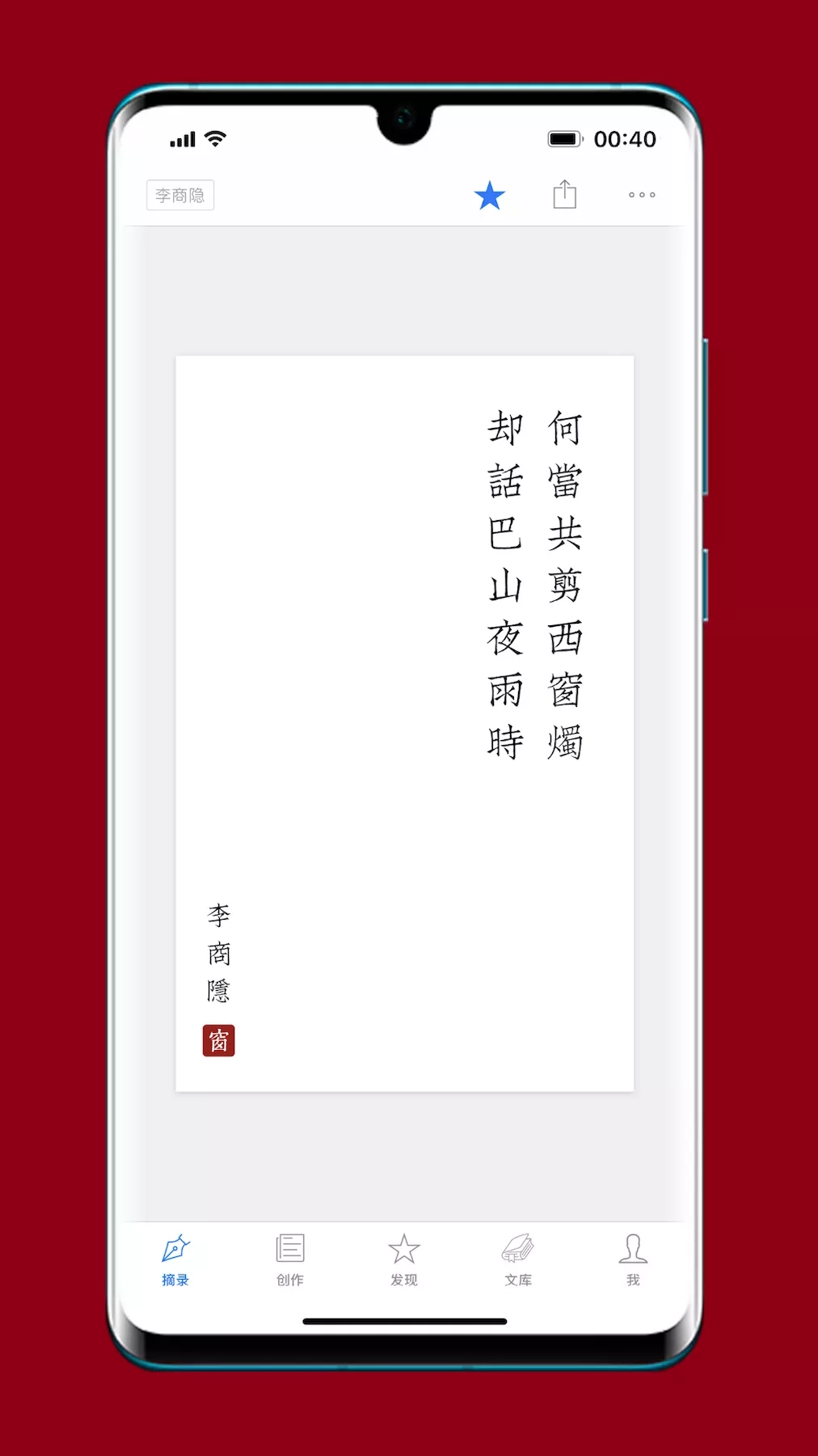 西窗烛致力打造创新的中华优秀传统文化平台,提供电子书、唐诗、宋词、古文、典籍、绘画、写字、原创、朗诵、汉服、社交、文创电商等古诗词学习工具和优质原创社区。西窗烛的诞生旨在建立诗词与用户、传统与现代、价值与传承的沟通桥梁,让用户可以更便捷、更全面、更自由地触达到更广阔的中华诗词以及中华优秀传统文化领域。 获得荣誉: 年度趋势应用、精选应用、精品应用、编辑精选、主打推荐、至美应用、金米奖、极光奖、设计奖、创新奖等。 主要功能: 【诗词文库】五千年中华文化,100万诗词文库,按朝代、作者、作品分类搜索,涵盖注释、译文和赏析。 【精选分类】对100万诗词进行分类,包括:选集、主题、写景、节日、节气、词牌、时令、用典、地理、名山、城市、时间、花卉、小学、初中、高中等。 【诗词作者】孔子、老子、孟子、庄子、苏轼、李白、陆游、王维、杜甫、杜牧、屈原、柳永、李煜、李商隐、辛弃疾、李清照、白居易、陶渊明、温庭筠、欧阳修、晏几道、刘禹锡、孟浩然等。 【经典文集】唐诗三百首、宋词三百首、元曲三百首、诗经、乐府、千家诗、古诗十九首、道德经、周易、论语、金刚经、山海经、茶经、红楼梦、三国演义、水浒传、西游记、西厢记、传习录、四时幽赏、随园食单、幽梦影、菜根谭、声律启蒙、笠翁对韵等。 【诗词书籍】《中国文学鉴赏辞典大系》《三百首鉴赏辞典系列》《中国文学名家名作鉴赏辞典》《国学典藏》《中国古代名著全本译注丛书》等数百书籍。 【诗词图库】诗中有图,图中有诗。 【词典释义】屏幕取词查检,释义即刻呈现。 【学习计划】你可以设置经典诗词、文库分类和诗单收藏变成自己的学习计划,每天有计划的打卡学习。 【一日一赏】在百万文库基础上的一日一赏和诗词卡片,指尖划过片笺片玉,诗词之美熨帖心肺。 【卡片创作】创意的卡片式左右翻阅,卡片内容可自由创作,支持简繁和字体切换,保存浏览记录。 【诗单、词单】像歌单一样可以创建诗单、收藏诗单,添加你喜欢的诗词到诗单,珍藏一份诗意。 【诗词朗诵】窗外雨打芭蕉,陪你挑灯读诗。用家乡话读、陪着孩子读、学古人吟诵、配乐朗诵、为你读诗。 【诗词抄写】一盏灯,一方印。此刻,安静的读一读诗词,此间一隅安吾心,也能觅得浮生半日闲。 【诗情画意】一幅绘画,一首原创,一个短视频,尽情发挥你的才华。暮云春树,亦能与君共赏。 【精选创作】每天推荐用户原创内容,包括:写字、语音、音乐、笔记、原创、新诗、配图、绘画、视频、篆刻、随笔、故事。 【精选专辑】自己的原创作品,精选成集。各美其美,美人之美,美美与共,天下大同。 【兴趣社交】一花一叶一追逐,一生一世一双人,寻找兴趣与共鸣。书卷多情似故人,晨昏忧乐每相亲。 【练字模式】摘录页、诗词页可以切换到练字模式,体验临摹、练字的场景,提供丰富的字体和样式。 【丰富字体】提供楷书、行书、篆书、隶书、草书、刻本、毛笔、宋体、仿宋、创意等几十种漂亮唯美的字体。 【兴趣话题】李白、苏轼及爱情、秋日等都是话题。各抒胸臆感受思想碰撞的火花,素未谋面却能倾盖如故。 【诗词游戏】诗词大会、飞花令和诗词接龙,累计有百万人次参加,诗词在富有趣味性和竞技性的游戏过程中焕发新的魅力。 【联系我们】 官方微博号:西窗烛App 微信公众号:西窗烛App 联系邮箱:hi@xcz.im 官方QQ群:133575768