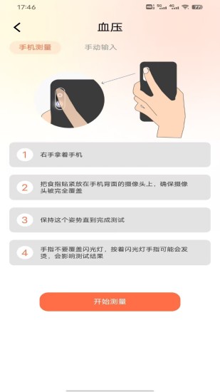 这是一款可以在手机进行血压、血氧测试的血压测量仪,更加的方便。操作简单,只需将手指按住摄像头,就能轻松测出数值,保留测量结果,方便观察身体情况。超多实用测量,及时了解自己的身体情况。 【特色功能】 1.随身测量:随时可进行血压、心率、血氧测量,准确率高,方便用户进行日常检测 2.特色检测:用手机进行视力检测、色盲检测、散光检测 3.超多测试:超多热门测试可选,来看看有没有你感兴趣的 4.体检数据库:包含血糖仪、血红蛋白、心脏健康、肝功能、便常规、尿常规等超多常规检测数据库,帮你分析和了解你的体检测量数值 【适用人群】 - 中老年人 - 身体指数出现异常,需要经常监测身体数值的人群,该软件为你提供一个更加方便、功能更全面的渠道 - 康复期 - 康复期人群需要进行长期的身体数据监控,方便进行康复 【注意事项】 *手机测量数值与仪器的精准测量数值存在较小偏差,介意者慎用