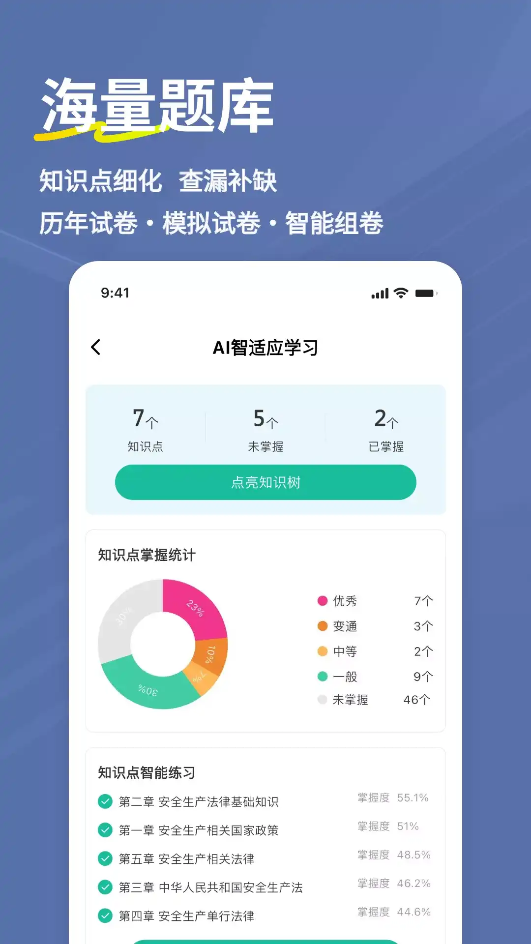 【刷题神器简介】 刷题神器,是一款专注于职业资格考证的学习备考APP,为参加企事业单位内部考核、职业资格考证的学员提供一站式学习备考解决方案,涵盖建造师/自考/医学/会计/经济师/成考/金融等职业考证服务,题库+课程相结合,帮助每一位考生顺利通过考试。 集导题、刷题、搜题、练习与考试于一体的学习工具,用这一个就够了。专注提供丰富、全面、优质的题库内容,致力于解决刷题中的重点难点。累计当前已上传超50万套试卷,1亿多道试题,组织考试10万多场,参加考试人次过千万! 全面覆盖医疗招聘、建筑工程、八大员、消防工程、安全工程师、造价工程师、建造师、财会经济、事业单位招聘、警法考试、司法考试、社会工作者、银行招聘、基金从业、证券业从业、经济师、高级经济师、注册会计师、税务师、初级会计、中级会计、军队文职、人民警察考试、士兵提干、三支一扶、成人教育、公务员、银行金融、出版资格、安规题库、正副高卫生职称、执业护士、药学职业技能、医护英语、医学博士、国家电网、驾考理论、教师资格、英语四六级、人力资源、物业管理、初中级卫生职称、卫生人才评价、执业护士、执业医师、执业药师、健康管理师、育婴师、保育员、医学三基、高起专、高升本、专升本、出版资格、心理咨询师、保险公估人、红十字救护员、铁路地铁、马原毛概等多个行业历年真题、精编试题答案与解析。 【刷题神器功能】 1、轻松建立私人专属题库,题库智能一键录入 自主研发的AI试题识别技术,支持各种格式文档,一键轻松录入各类试题,包括市场上常见的题型、理科公式、多媒体资源、富文本等。并且提供多种题库访问策略,轻松保护知识产权,适合个人学习和群组学习。 2、AI组卷考试,智能防作弊,轻松组织考试 AI组卷支持随机组卷、选题组卷、抽题组卷等各种组卷方式,通过设置考试种类、题型、知识点、难度、抽取数量、排列顺序等各种组卷组卷策略,配合智能防作弊功能,实现系统阅卷,成绩导出,轻松完成烦杂的组卷任务。 3、专题划分,学习轻松应对 四六级考试、近代史、马原毛概、驾考理论、党史党建、生产安全、公务员行测、铁路地铁、银行从业、教师资格考试、注册会计师等。整合细分学习专题类目,增加学习纵深能力和知识覆盖面。 4、AI刷题学习,支持离线刷题,随时随地学习 AI刷题支持顺序练习、随机练习、模拟考场等各种记忆强化的刷题方式,并且多终端刷题支持和离线刷题,学生可利用碎片化时间进行充分学习;错题本、笔记本,智能解析帮助更好学习。 5、试题交易,轻松知识变现 刷题神器提供了一个试题交易“淘宝”平台,机构/作者可以将自己的题库转为付费题库,轻松实现知识变现,共同瓜分百万用户市场。 【刷题神器常见适用场景】 新员工培训、招聘考试、上岗培训、知识竞赛、党建考试、职业培训、比赛排行榜、问卷调查、考试测评。 让学习更简单,让考试更轻松,让刷题更方便!