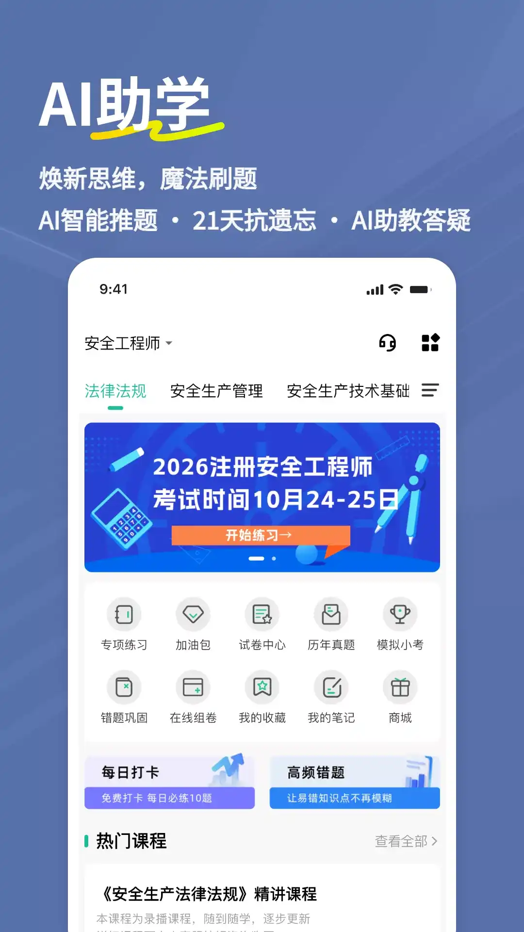 注册安全工程师考试备考刷题软件! 精讲课程+海量题库+ AI助教,三位一体备战注安师! AI助学焕新上线,章节刷题严格依据注册安全工程师考试大纲,AI智能推题精准定位薄弱环节,结合艾宾浩斯遗忘曲线研发“21天抗遗忘训练”,让考点过目不忘! 注册安全工程师考试题库是考生专用的实现科目练习和模拟考试的手机端APP软件,集智能辅导、题目解析、AI智适应学习和考试考情于一身,涵盖该考试热点、难点和常考点,有注册安全工程师考试的各个科目的历年真题集、模拟题集、章节练习,每个科目独立,结合AI智能刷题、解析拓展、错题巩固、模拟考试等多维模块,助你查漏补缺,是各位考生学习备考的帮手。 【产品功能】 >>练习: 【章节练习】题库内所有科目的章节题目均可随意练习。 【历年真题】收录近几年注册安全工程师考试真题,与考试亲密接触。 【高频题目】大数据分析高频考点与易错题,精准推送专项强化训练。 【错题巩固】自动生成专属错题本,支持题目反复练习,攻克薄弱环节。 【AI智能推题】基于能力评估报告,推送薄弱知识点+顽固错题+抗遗忘特训题。 【模拟考试】模拟考场环境,智能组卷、计时评分,提前适应考试节奏。 【学习资讯】备考技巧、复习技巧,尽在注册安全工程师练题狗。 【指南与支持】 ·备考资讯、招考通知、复习技巧一站式获取 ·随时学习、多端同步,碎片化时间高效利用 【技术支持】鼎维云课堂 【联系我们】 微博:@练题狗 微信:liantigouapp 客服电话:+8618290463382 (工作日9:00-18:00)