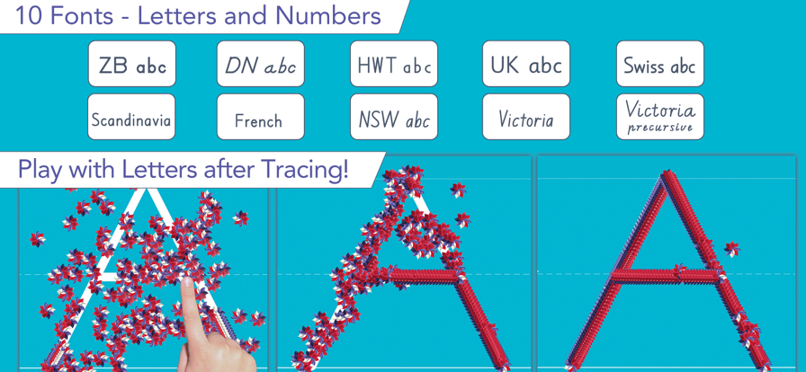 让学习书写变得前所未有地有趣! • 示范并要求正确书写 • 大小写字母、数字和单词 • 书写练习乐趣无穷,在练习结束时会使用50余个动画贴纸、音效和互动游戏来模拟字母 • 16种字体可供选择 • 可以创建你自己的词汇表(并对每个单词进行录音) • 完全个人化定制,满足每个孩子的需求(字母大小、难度,……) • 定期有报告,追踪孩子进步情况 • 为学步儿设计的形状描红游戏 • 可以生成PDF格式的练习页,打印后可供孩子在纸张上进行书写练习 请注意:此款APP只设置有英语、法语、德语、意大利语和西班牙语版本。但是你可以用自己的语言添加词库中的单词并录音。