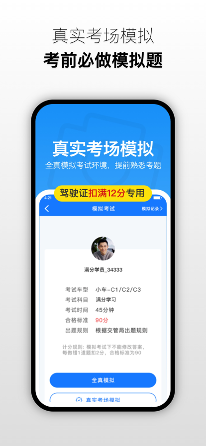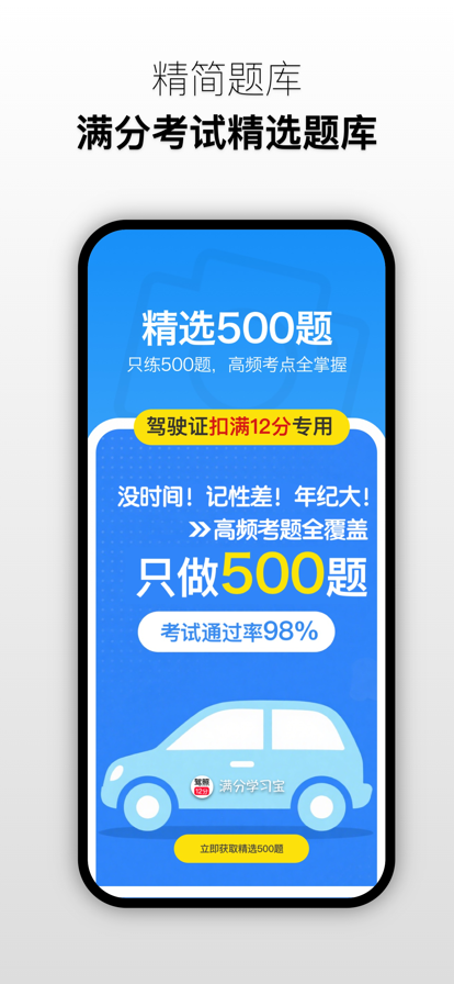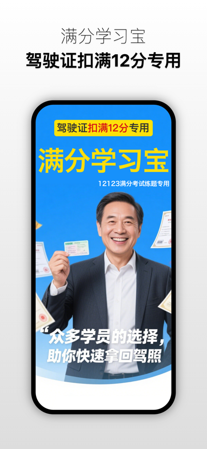 【满分学习宝】专为驾照扣满 12 分的驾驶员打造,用更高效、更贴合成人学习习惯的方式,帮你快速通过满分学习考试,重新拿回驾驶资格。 作为深耕驾考满分学习领域的专业工具,满分学习宝直击用户痛点,依托三大核心功能构建 “学 - 练 - 考” 全流程闭环,让你不用奔波线下,在家就能轻松搞定学习任务。 1、全真模拟考试,还原考场实战体验 很多驾驶员对电脑答题不熟悉,一到考场就紧张。满分学习宝的 “模拟考试” 功能完全依照车管所考试标准开发,从题型分布、答题计时到评分规则,1:1 还原真实考试场景。每次模拟后都会生成详细错题报告,精准标注知识点漏洞,帮你针对性补弱。更贴心的是,系统会自动记录每次模拟成绩,通过趋势曲线直观展示进步轨迹,让你对自己的备考状态了如指掌,考前不慌不忙。 2、海量题库随心练,考点覆盖无死角 软件收录了全新版全国通用的满分学习题库,涵盖科目一、科目三安全文明驾驶相关考题,实时同步车管所考试大纲,确保每一道题都是考点。无论是高速公路限速规定、交通违法处罚标准,还是应急处置技巧,你都能在这里找到对应练习。题库支持按题型分类练习(如判断题、单选题、案例分析题),也能按知识点专项突破(如 “道路交通安全法”“事故处理程序”),让你按需刷题,效率翻倍。 3、精简 500 题,直击高频考点 针对成年人 “时间紧、记不住” 的学习难点,【满分学习宝】独创 “高频考点 500 题” 模块。通过大数据分析近 3 年全国满分考试真题,筛选出出现频率高、易失分的核心考题,去除重复考点和冷门内容,让你不用在海量题目中盲目刷题。每道精简题都配有清晰解析,用通俗语言拆解法条原文,结合真实案例帮你理解记忆,比如用 “口诀记忆法” 总结罚款金额,用 “场景联想” 梳理让行规则,哪怕是年纪稍大、基础薄弱的用户,也能快速掌握关键知识点。 如果你正面临驾照满分学习的难题,不妨试试【满分学习宝】。不用请假奔波,不用死记硬背,利用碎片时间高效备考,让重新拿证这件事变得简单又轻松。现在下载,即可免费体验部分题库和模拟考试功能,早日通关,重返驾途!