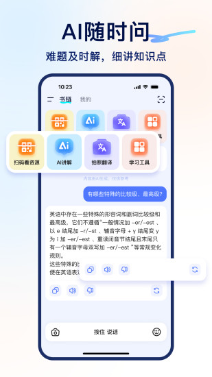 快对致力于为上亿用户提供整本教辅解答、AI解题、答疑、写作、翻译及文件扫描等服务,接入DeepSeek大模型,AI答疑更智能,适用于中小学生、大学生、家长、老师及职场人群。 【快对特点】 1、扫码查教辅:覆盖小初高、中专、大学超百万本教辅,正确率高。 2、作业智能批改:一键检查对错,带视频讲解,错题可举一反三,辅助家长辅导。 3、AI智能解题:基于Agent技术,秒出详尽的解题步骤,支持奥赛与高数,可无限追问。 4、AI写作辅助:支持论文改写、报告生成,涵盖教案、策划、发言稿等多种类型。 5、英语拍照翻译:整段整页翻译、取词翻译、分句精讲、原文朗读及课本点读。 【快对VIP介绍】 提供视频解题、VIP问答等权益。支持1个月、3个月、12个月订阅,可连续包月/季/年。取消续订需在当前周期结束前24小时于「我的-VIP中心-自动续费管理」内操作。详情请见: https://www.kuaiduizuoye.com/kdzy/vip/vipMemberService.html https://www.kuaiduizuoye.com/kdzy/vip/vipFeeDetails.html