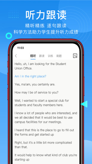 每日英语听力,专为英语学习者打造,软件会根据您的英语水平,每天推荐有趣的学习内容,《头脑特工队2》电影双语有声书、四六级资料...你需要的,这里都有。软件支持单句精听、跟读打分等多种训练模式,从现在开始,每天坚持十分钟,在家也能提高英语。 【资源丰富,每日更新】 - 每天为您精选推荐一篇英语听力文章 - 各种泛听资讯:VOA常速慢速、BBC六分钟、CNN10学生英语、经济学人、新概念,一站式收听; - 各类考试:初高中、大学四六级、考研、雅思托福、GRE等备考听力材料; - 兴趣学习:有声读物、名人演讲、公开课、少儿英语、影视英语等丰富资源。 【功能强大,操作简便】 - 划词搜索:与《欧路词典》无缝集成,长按查词,即指即译; - 播放调节:8档语速调节、4种循环模式,单句精听、听写、测验,满足不同阶段学习需求; - 收藏下载:支持批量下载,离线随时收听; - 听力上传:支持听众在官网上传自己的资源和同步高亮字幕; - 跟读打分:跟读后可查看单词发音准确度,纠正发音问题。 【联系我们】 - 软件内部:账号 - 帮助与反馈 - 意见反馈 - 客服电话:400-920-1209