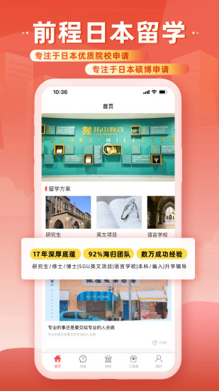 前程日本——专业日本名校读研申请14年 責任を持って、未来へ 专注日本名校读研申请十余年,咨询、客服、申请、文书四位一体为您提供专业的申请服务。 87%海归人员比例,八大申请团队,细分专业,高成功率。 一站式服务为您解决留学申请、语言培训、背景提升、在日生活辅助,升学指导等! 【日本留学,就选前程日本】 「留学申请」专业顾问在线指导,申请全解读 「专业问答」聚合日本留学全方位,只为给你最专业的答案 「日本院校库」院校介绍/录取条件/申请费用,智能选校更轻松 「留学资讯」海量丰富日本留学资讯,优质干货想你所想 【申请更透明,服务更贴心】 前期准备:充分了解学生申请目标,确定申请时间轴及各环节细节。 - 口语测评、择校规划、申请方案、教授推荐 申请中期:完善申请流程,一对一管家式服务,随心定制。 - 背景优化方案、自荐信指导、邮件指导书写 - 研究计划指导书写、1v1面试指导、1v1模拟面试 申请后期:从出愿材料到后期在留申请各个环节为您保驾护航。 - 出愿材料、在留材料、签证申请 - 宿舍申请、行前指导、在日服务 【满足更多人群,模块化定制】 「+1计划」 针对大二、大三申请的同学,包含自荐信、研究计划、面试指导等,免费背景提升, 「研究计划书」 提升研究计划内容质量和写作水平,定题、研究方法范围、要点讲解等。 「内诺申请」 与教授发信套磁,沟通研究课题并在此期间争取拿到内诺。 「奖学金申请等在日服务」 提供教学金申请,学校宿舍申请或校外房屋租赁等在日服务。 支持全套私人定制 【联系我们】 如果您对APP有任何疑问或者建议请联系邮箱:app@jiemo.net