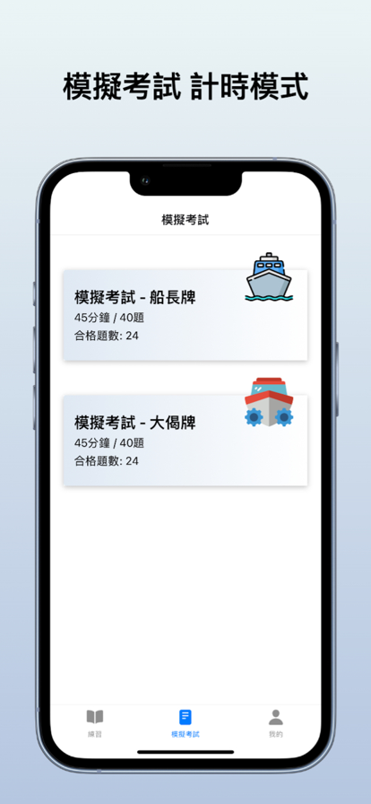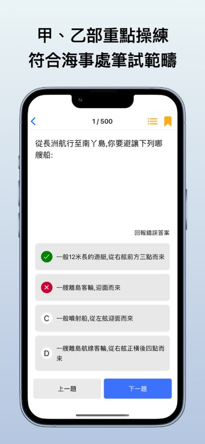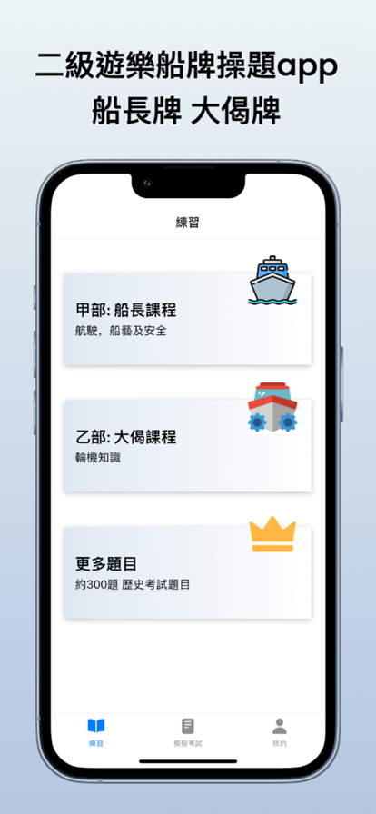 1.題目練習 收集愈1000題過往筆試例題及精選試題,完全免費使用。題目分為甲、乙部,內容完全符合最新海事處筆試範疇,助您做好考試準備。 2.模擬筆試 按照真實筆試規則,計分及合格標準按照海事處最新要求。App內提供倒計時功能,完成筆試後即時知道結果,助您加強考試信心。 3.題目收藏 一鍵將您的重點題目加到收藏列表,方便快速重溫。