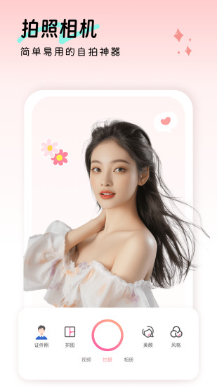 美颜相机,拍人像更出片!年轻人都在用! — 硬控人像摄影潮流 — 【苹果模式】拯救原相机锐化瑕疵,高清真实还原美貌!白天晚上都出片! 【微单模式】手机爆改微单,支持景深虚化,普通人也能拍高质量大片! 【Pocket模式】横屏拍摄更专业,vlog、live拍摄更好看。清透人像效果,随手拍出电影感! 【更多模式】原生模式、CCD模式等,满足不同场景的拍照需求! — AI人像大师更专业 — 【AI换装】一键无痕换装,电子穿搭更有性价比!多款服装以及自定义效果,你的电子衣橱无限大! 【AI人像精修】一键减肥、去双下巴、AI消除、AI一键美颜等,一键出片! 【AI写真】博主同款写真、多人写真、儿童写真、卡通分身等,实现写真自由! — 更懂年轻人的自拍流行 — 【医美级美颜参数】水光肌、除皱、3D隆鼻、去颈纹、下颌线等,0成本get专业医美级美颜! 【新潮流滤镜】AR贴纸、质感妆容、潮流滤镜等,想怎么拍就怎么拍! 【IP跨次元】迪士尼、三丽鸥等海量IP,邀你一起跨次元合拍! — 手机秒变视频Vlog神器 — 【高清专业】4K拍摄、视频精修、提词器等功能,轻松拥有清晰质感画面。 【美颜相机