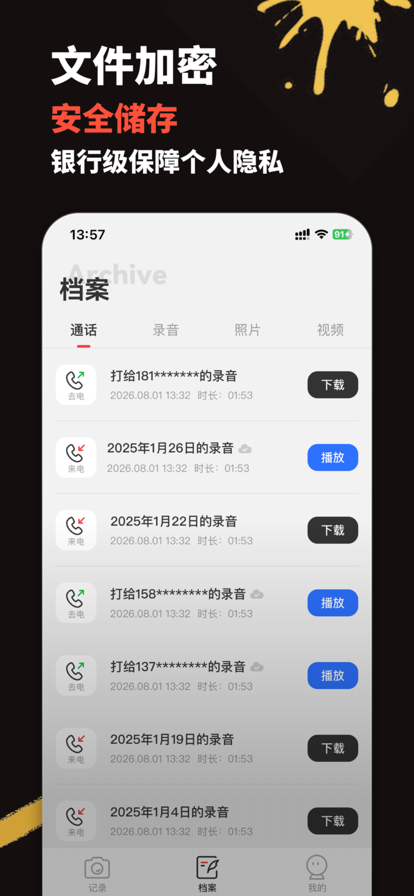 Safee,是一款专为iphone用户设计打造的,对方无感知的静默通话录音助手,包含通话自动录音、黑屏静默拍摄,录音内容识别总结、语音备忘录的取证工具软件。一键快速开启,帮助您快捷记录每一次重要事件。 当您身处危险,遭遇突发事件或进行谈判维权遭遇纠纷时,Safee 以静默方式记录,安全快捷采集收集,保留关键信息证据,保护人身安全维护自己的合法权益。 【我们的核心功能】 【通话录音】高清采集 拨打电话:对方接电话显示主叫本机号码,对方无感知无语音提示,避免尴尬告别陌生号码; 接听电话:一键拨打自动录音,告别繁琐通话操作; 高清录音文件:提供无损无压缩录音文件,清晰记录通话内容; 文件云存储:自动存储到云端,安全且不易丢失,随时访问和分享管理。 录音识别总结:支持语音转文字,智能提取核心要点,自动生成摘要,高效整理会议、谈判等录音信息。 注意:其中接听电话录音功能,需要提前在当地运营商,开通三方通话功能,才能正常使用。 【照片视频语音备忘录】静默采集 无提示音、无闪光灯、黑屏静默采集照片、视频、语音备忘录,帮助您在危机或紧急时刻,安全有效地记录被侵害的关键证据。 注意:本产品仅限合法用途使用,例如个人安全、合法记录等。请遵守您所在地区的隐私法律和法规。 安全本地存储 所有采集的信息都经过严格加密,存储在您的手机本地,我们不会以任何形式收集、上传或分析您的任何数据。 「应用场景」 1.法律纠纷、商务谈判、涉及法律纠纷和维权取证; 2.人身安全受到威胁或被胁迫时; 3.特别紧急情况下的合法信息收集; 4.其他合法合规应用场景。 「其他规则」 --付款:通过用户的iTunes账号扣款,用户确定订购后及付款 --续订:苹果iTunes账号会在到期前24小时内扣款,扣费成功后订阅周期顺延1个订阅周期 --取消订阅:如需取消续订,请在当前扣费期前至少24小时操作,操作方法:从Home页进入[设置]->点击[iTunes Store与App Store]->点击[Apple ID],选择[查看Apple ID]->[账号设置]->点击[订阅],点击下方取消订阅即可 --用户协议:https://safee.bgstreet.cn/h5/userprolicy.html --隐私条款:https://safee.bgstreet.cn/h5/privacypolicy.html --付费会员服务协议:https://safee.bgstreet.cn/h5/subagreement.html 「联系我们」 - 使用过程中,任何问题和意见,请在App中联系我们,客服会在第一时间给您反馈你的反馈是我们最大的动力! -公众号:Safee