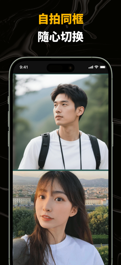 捕捉生活的双面精彩! 这是一款全新的创意视频工具,让你可以同时使用前置与后置摄像头,轻松记录下当下的全景与心情。 在演唱会上,你可以一边拍下舞台上的震撼场景,一边记录自己兴奋的表情;在旅行途中,你既能展示绝美风景,又能分享当下的心情。这就是它的魅力——让视频更真实、更有故事感。 主要功能 - 双镜头录制:前置与后置摄像头同时开启,轻松展现故事的两个角度 - 视频防抖:深度优化的防抖技术,让画面更加稳定流畅 - 音乐添加:为视频搭配你喜欢的音乐,提升表现力 - 拍摄样式:支持在超过10布局中自由选择前后摄像视频的展示方式,让创作更具个性。 - 视频边框:可自定义每个视频的边框颜色,打造专属视觉风格。 - 趣味贴纸:轻松点缀画面,增添个性与乐趣 - 创意边框:让视频更具风格化的视觉效果 - 一键分享:轻松分享到社交平台 这不仅是一个拍摄工具,更是一种全新的表达方式。它帮助你捕捉当下的真实情感,并与最重要的人分享属于你的独特故事。 设备支持 - 同时录制功能适用于 iPhone XS 及以上机型。