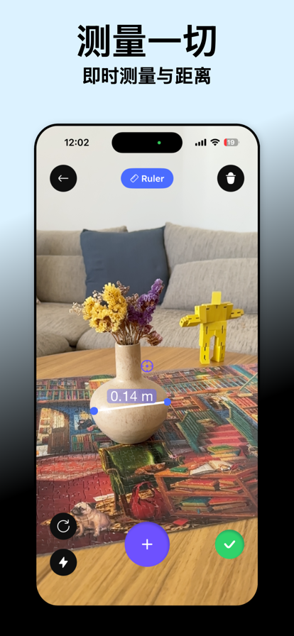 一部手机=万能卷尺,随时随地精准测量 卷尺测量仪 让你的iPhone瞬间变身为强大的 AR测量工具箱。 无论是测量长度、面积、身高、平面图还是3D空间,只需轻轻一点,就能获得精准数据。 无需再携带卷尺或尺子,用手机即可完成所有测量任务! 【核心功能】 距离测量 开启相机,轻点两点,即可测量任意距离。支持横向、纵向及对角测距,厘米级精准。 高度测量 自动识别垂直物体或人体,轻松测出身高、墙高、家具高度等。 面积测量 & 平面图生成 围绕目标添加测量点,即可自动计算面积并生成平面图。非常适合装修、家具布置或房屋测量。 水平仪 & 垂直尺 随时检测桌面、墙体或相框的水平度,确保安装精准无误。 实体尺子模式 将手机边缘当作直尺,屏幕显示厘米/英寸刻度,可测小件物品。 3D扫描建模 扫描任意物体或空间,快速生成 3D模型与真实尺寸,用于家装设计或物体对比。 测量记录与分享 自动保存所有测量历史,支持一键截图生成带标注的测量图,便于回看与分享。 【使用场景】 家装测量:测量房间大小、家具位置、墙高、平面图 设计施工:精准测距、生成面积和3D空间模型 日常生活:测量身高、挂画、窗帘、桌子高度 工程场景:快速校对水平垂直,记录测量数据 租房/搬家:快速测量新居空间,规划家具摆放 【我们的优势】 采用最新 ARKit 测距算法,精度高达毫米级 支持 iPhone、iPad 多机型,UI简洁易操作 一键截图带标注,方便分享与报告 无广告干扰,体验流畅 【立即下载】 让 卷尺测量仪 成为你日常生活与工作中的智能测量助手。 从此告别实体卷尺,体验智能AR测量的高效与精准!