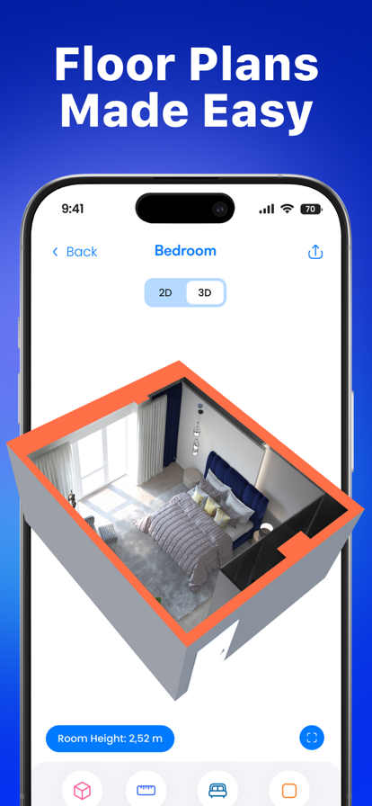 3D Lidar Scanner: Room Planner – Measure & Plan in Seconds Turn your iPhone or iPad into a smart tape measure for your home. 3D Lidar Scanner: Room Planner uses LiDAR and AR to quickly capture rooms, measure distances, and create floor plans – perfect for renovations, furniture planning, or quick checks around the house. Key Features: • Room Plan in 3D – Scan your space with LiDAR and generate a 3D room layout with accurate dimensions • AR Tape Measure – Measure length, height, and distance directly in your camera view • Area & Surface Calculation – Quickly calculate floor, wall, or object areas for paint, flooring, or furniture planning • Floor Plan Creator – Build simple, clear floor plans to share with family, contractors, or designers • Measurement History – Save your scans and measurements and revisit them anytime • Clean, Fast Interface – Minimal, intuitive design focused on precision and speed Whether you’re moving into a new place, planning a remodel, rearranging furniture, or just checking if that sofa fits – 3D Lidar Scanner: Room Planner makes it easy to get reliable measurements without a physical tape measure. LiDAR & Device Compatibility 3D room scanning and LiDAR-powered features require a device with a LiDAR sensor (for example, iPhone 12 Pro or later Pro models, and recent iPad Pro models with LiDAR). On other AR-capable devices, you can still use the AR ruler and basic measurement tools. Privacy Policy: https://www.belkalabs.com/privacy Terms of Use: https://www.belkalabs.com/terms