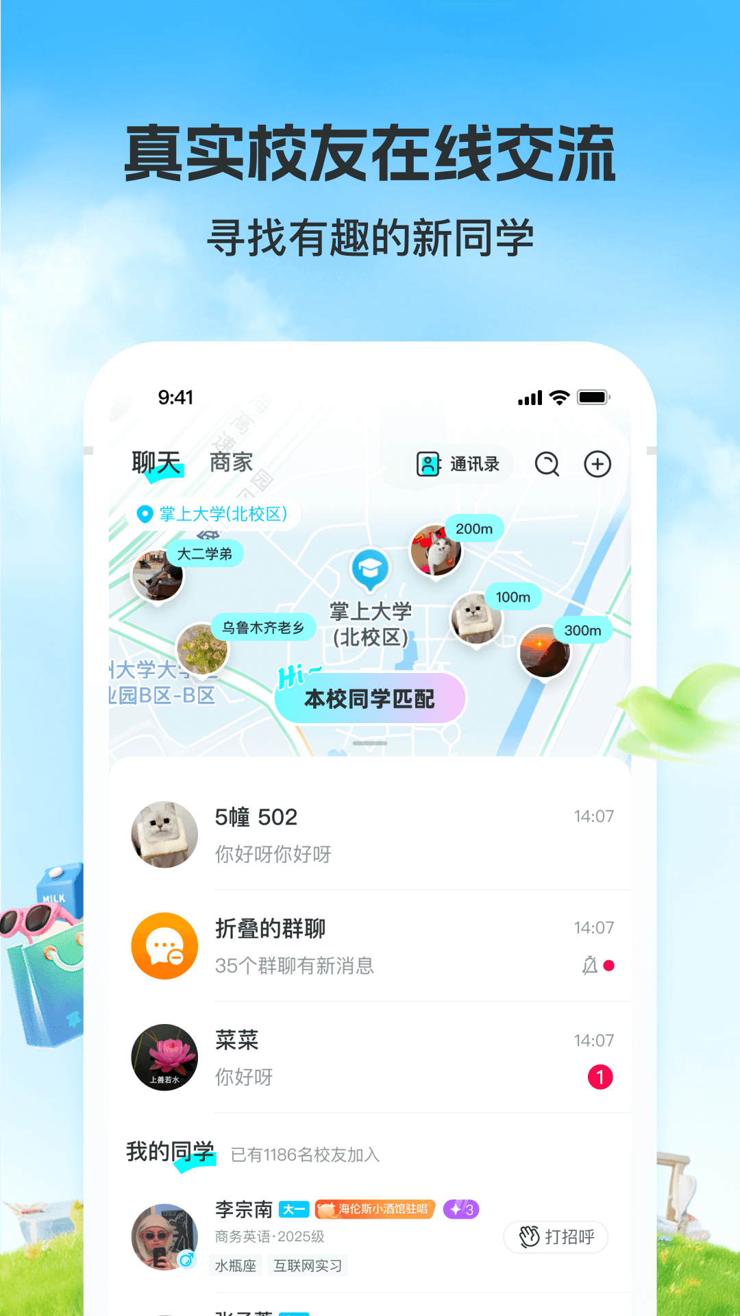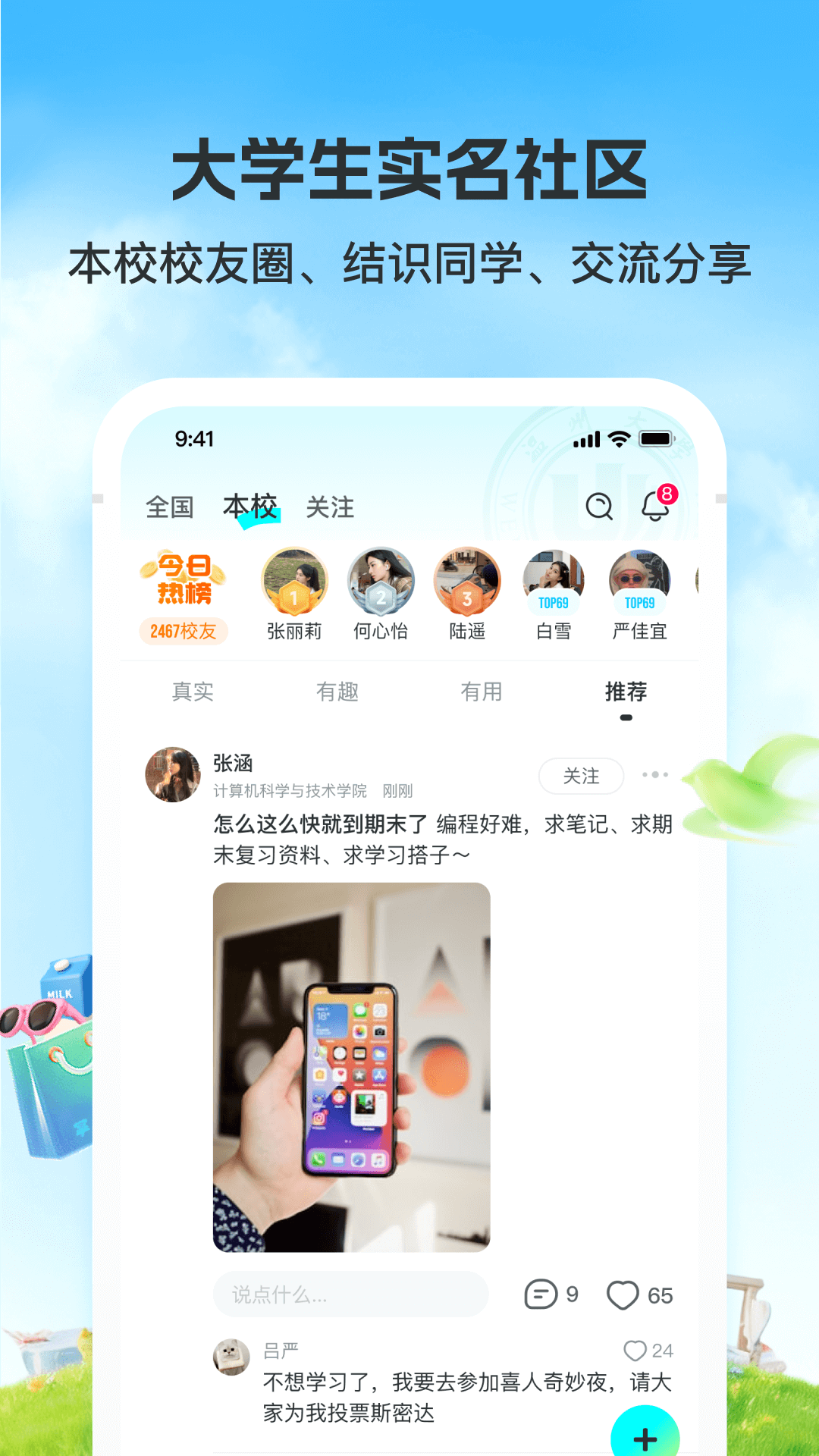 大学通——智慧校园生态服务平台<br>以「娱乐社区」「校园跑腿」为核心,打造新世代校园多功能智慧平台<br>海量社区内容供你看,发帖留言互动,分享热爱,玩转社区<br>抢单赚零花:实名认证学生骑手,空闲时间轻松变现,月均增收800+<br><br>【核心功能|社区】<br>● 游戏、影视、动漫、穿搭、找到你的组织<br>● 热门话题实时更新,全网爆梗一网打尽<br>● 刷梗、吐槽,边看视频边聊天,结实好友<br><br>【核心功能|校园配送】<br>√ 学生互助网络<br>● 自由发布任务:代取外卖/跨校送资料,5分钟极速响应。<br>● 抢单赚零花:实名认证学生骑手,空闲时间轻松变现,月均增收800+<br><br>【核心功能|闲置交易】<br>海量精品闲置物品随时交易下单
