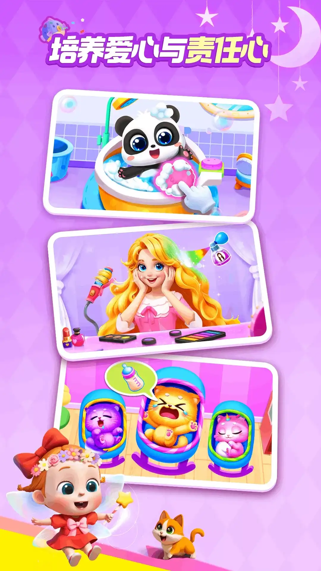 照顾小宝宝,是什么样的体验?让【照顾小宝宝】App告诉宝宝! 在儿童益智App【照顾小宝宝】中,宝宝将变身“小大人”,体验一回照顾小宝宝的日常:陪伴小宝宝玩耍、尝试哄睡小宝宝……多种“带娃”益智互动,考验着宝宝的动手力、反应力等多项能力! 宝宝们,想成为会照顾小宝宝的可靠姐姐or哥哥吗?快打开App掌握“带娃”笔记吧! 【制作果蔬饼,考验动手能力】 小宝宝爱吃的食物,该如何制作?展现动手能力的时间到!先将土豆、紫薯捣成泥,装入裱花袋;再用裱花枪,将蔬菜泥挤成小份,装入小宝宝的餐盘。哇,蔬菜泥看起来美观又美味! 宝宝再来制作一份水果酱饼吧。把果块装入手动搅碎机,拖动拉绳:一下、两下……水果酱完成。接着把它倒入模具,再用勺子轻轻压实,水果酱饼就做好咯。看,小宝宝吃得多香! 【比拼接玩具,锻炼反应力】 小宝宝想玩一场“篮筐接物赛”,宝宝快来陪陪Ta吧!3、2、1,“接物赛”开始咯:向左移动篮筐,接住章鱼玩偶啦;注意,右边有玩具飞来!迅速向右移动篮筐,就能成功接住它。 在接玩具时,宝宝还要注意两种奇妙玩具:接住“小恶魔”玩具,会让篮筐缩小;而接住恐龙玩偶,能让篮筐扩大、接住更多玩具!玩具还在“袭来”,宝宝可要更加专注、快速反应。 【帮助“洗香香”,养成好习惯】 小宝宝“洗香香”的时间到啦!先从哪里入手,为宝宝清洁身体?瞧,小宝宝的脸上脏兮兮的,宝宝先来为Ta洗个脸吧:拿起毛巾,擦拭小宝宝面部,就能把脸上的污渍清理干净。 还没结束!接下来,使用沐浴球,在小宝宝周身打出泡泡;打开花洒,将泡泡冲洗干净……哇,小宝宝真干净。帮助小宝宝洗澡,还能让宝宝了解清洁步骤,养成讲卫生的好习惯! 【“花式”巧哄睡,培养耐心】 小宝宝该睡觉啦!如何才能让Ta睡个香甜的觉?试一试这招吧:把小宝宝抱进摇篮,轻轻盖好被子;再摇动摇篮,让摇篮慢慢摇晃起来……这样一来,小宝宝就能逐渐产生困意。 淘气的小宝宝还不想睡?为摇篮挂上床铃,给小宝宝递上可爱玩偶,再播放一首助眠儿歌……呼,小宝宝终于睡着了。通过这番“花式”哄睡,宝宝还能轻松培养良好的耐心哦! 在【照顾小宝宝】中,宝宝可以通过有趣的儿童益智互动,了解“带娃”方法,get多种“哄娃”妙招!更多趣味“带娃”挑战,都在App等宝宝来体验哦。 产品特色 1、App设置襁褓、爬行、站立3个幼儿成长阶段,让宝宝了解小宝宝的成长过程; 2、让宝宝体验“带娃”,能让宝宝感受帮助他人的乐趣,并且培养责任感和耐心; 3、多种“哄娃”日常,可以轻松锻炼宝宝的动手能力、反应力等不同的能力。 宝宝巴士BabyBus是专注打造儿童启蒙数字产品的原创品牌,累计服务全球5亿家庭用户。宝宝巴士秉承“快乐启蒙”的理念,用奇妙有趣的方式,为儿童量身定制以“好听国学故事、好看儿歌动画、好玩互动APP”为特征的海量数字启蒙内容,让孩子趣味认知、感受“真、善、美”。 欢迎联系 微博:@宝宝巴士 官网:http://www.babybus.com 邮箱:cn@babybus.com