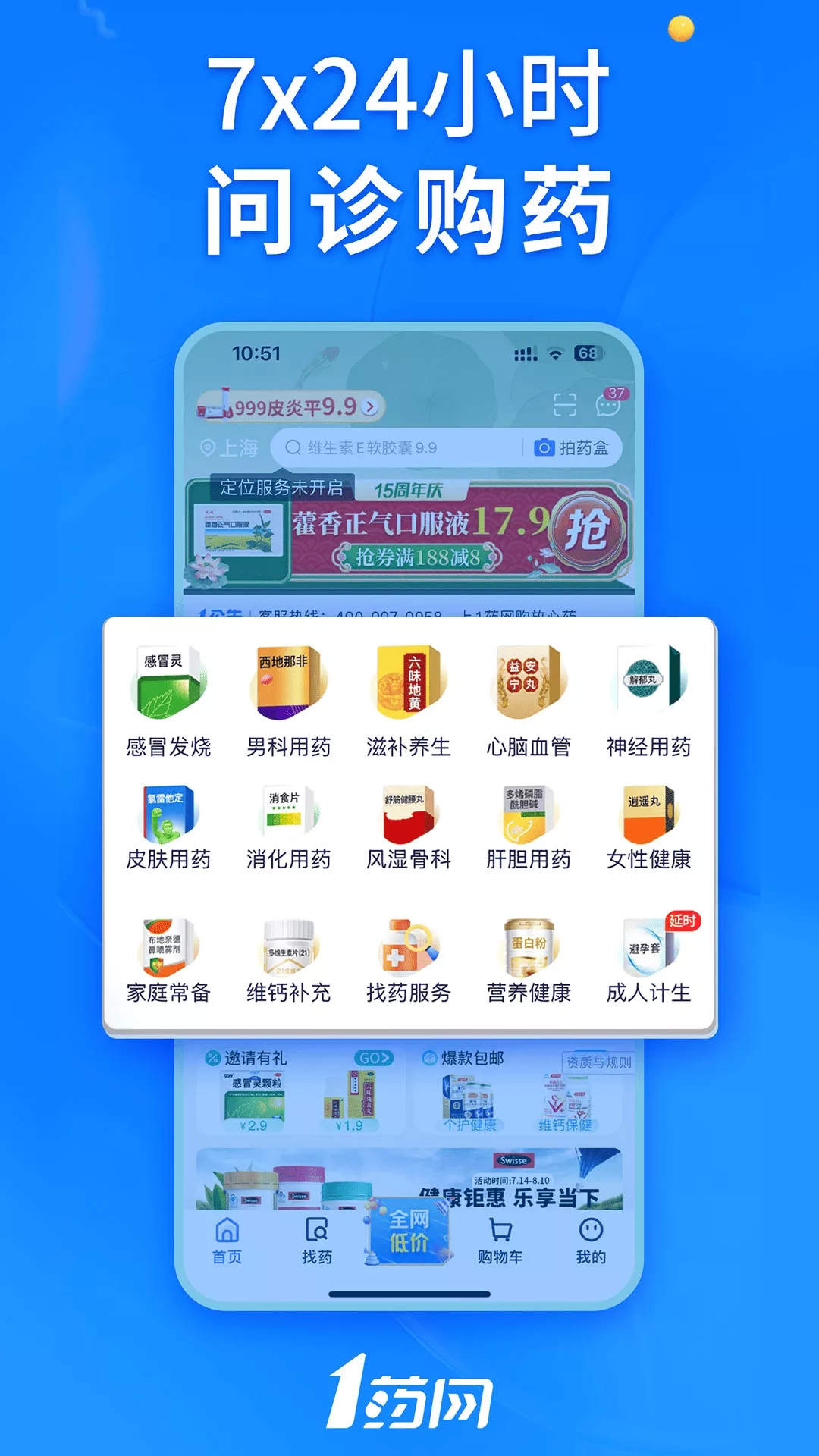 1药网,专业的网上购药平台,其前身是:1号药店、壹药网。 【1药网,专业的网上购药平台】 就医流程:筛选好医院、选择好医生、预约、挂号、购药、送药、用药......,1药网将与药房网、康爱多、平安好医生、微医、叮当快药、春雨医生、爱康国宾、丁香医生、医指通、健康160快方送药、趣医院等APP一道建立良好的患者就医、购药、用药体验; 【1药网,专业的网上购药平台】 为客户提供健康减肥、整容备孕、孕期睡眠、打折买药、全球购物等服务; 【1药网,专业的网上购药平台】 1、正品保证:首家“正品联盟”,超过500家知名医药健康产品厂商源头采购,品质保证。 2、商品超过140,000种,涵盖中药、西药、成人用品、本草纲目、维生素钙、滋补保健、隐形眼镜等。 3、优惠满满:便宜买好药,多形式的优惠让利,每月会员专享,始终为您准备惊喜。 4、专业服务:每天9:00~21:00专业用药在线咨询服务,帮您选对药、用对药。 5、名医在线:卫计委批准的互联网医院项目,三甲名医提供电话、视频问诊及电子处方。 6、闪电配送:当天下单,当天出库;北京、上海、广州等重点城市次日达。 7、快捷体验:快速找药、便捷支付,支持银联、支付宝、微信、货到付款等。 8、隐私保护:所有药品严格打包,杜绝泄露药品信息。