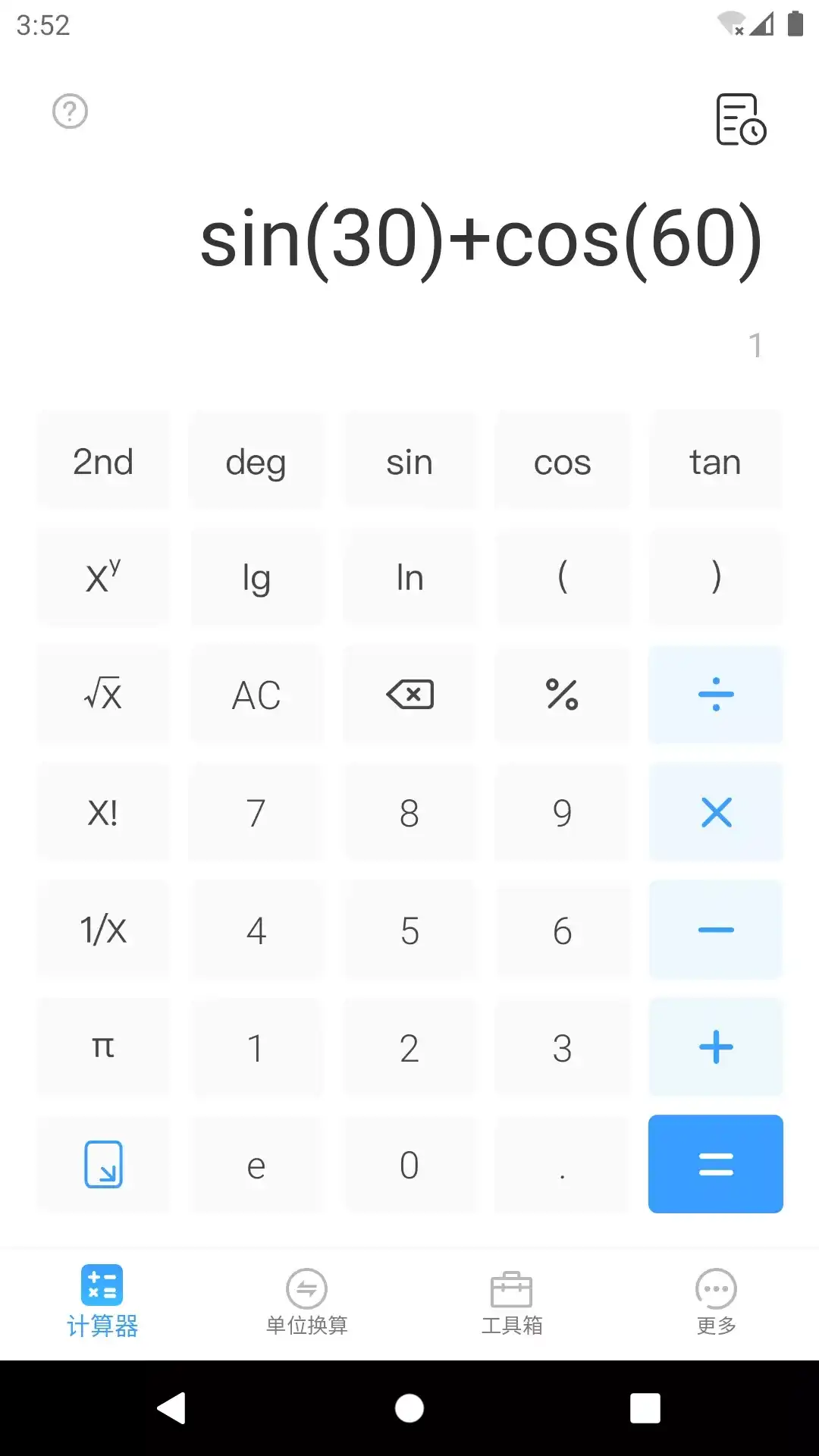 计算器专业版,专业计算器! 计算器专业版,操作简单,界面简洁清爽,功能丰富实用。 包括科学计算器,普通计算器,单位换算,BMI计算器,大写数字转换,汇率换算,进制转换等功能。 【特色功能】 1 科学计算器:包括三角函数计算,反三角函数计算,对数计算,幂计算,阶乘计算,角度弧度切换等。 支持表达式计算,支持保存计算历史记录。 2 单位换算:长度单位换算,面积单位换算,体积单位换算,质量单位换算,温度单位换算,角度单位换算, 时间单位换算,速度单位换算,压力单位换算,功率单位换算,油耗换算等。 3 BMI计算器:计算身体质量指数。 4 大写数字转换:财务大写数字转换。 5 进制转换:十进制,二进制,八进制和十六进制之间数据转换 6 其他热门小工具陆续开发中,目前支持汇率换算,万年历和指南针小工具 7 语音报数,按键震动反馈功能 8 汇率换算:支持全球100多个国家和地区货币汇率换算,汇率即时查询 9 房贷计算器:支持商业贷款、公积金贷款和组合贷款房贷计算,等额本金和等额本息计算 10 法定退休年龄计算器:根据出生年月和性别及人员类型计算退休年龄、退休时间和延迟月份 学习、生活和工作中非常实用的计算器。