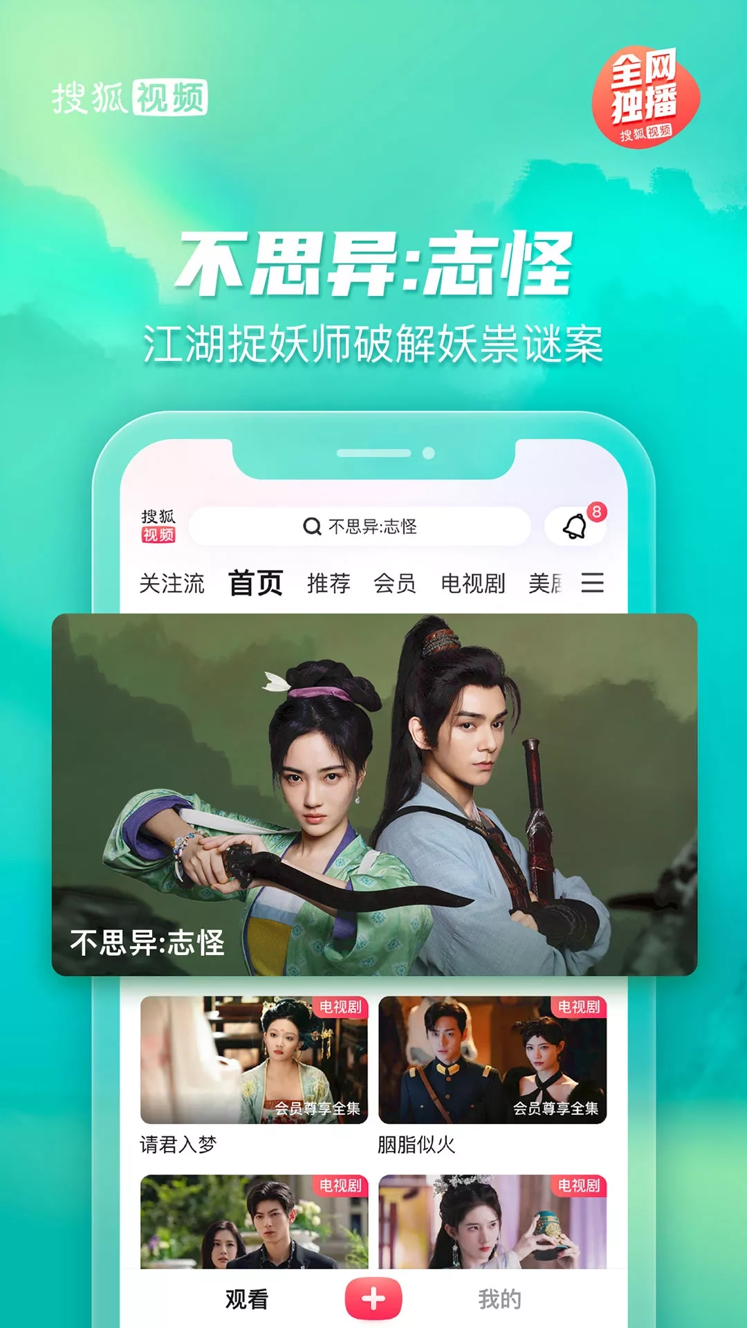 《不思异:志怪》独播:群妖乱象大战在即; 《铜鼓密码》:贞丰城沦为谍战修罗场; 《请君入梦》独播:暴君妖妃相思入梦纯爱救赎; 《荣耀青春》独播:刘家祎战宇强强联手,军校生活正式开启; 《胭脂似火》独播:许佳琪李卓扬深陷权爱斗争; 《英雄烈》:于晓光演绎一代抗战英雄的传奇故事; 《虎胆神鹰》:特别行动小组打响国宝守卫战; 《蓝盔特战队》:王彦霖展现新一代中国军人风采; 《洛基》:惊心动魄的时空历险即将来临; 《长梦留痕》独播:民国“灰姑娘”残酷成长史; 《姐妹情缘》:豪门姐妹上演乱世迥异人生; 《楚乔传》:赵丽颖乱世混战逆转命运; 《那年花开月正圆》:孙俪演绎陕西女首富的精彩一生; 《权力的游戏》:铁王座之争落下帷幕; 《风月变》:蝶变少女唯爱霸道将军; 《如果可以这样爱》:佟大为刘诗诗绝世虐恋; 《桃花绽放》独播:三姐妹上演谍战风云; 《他在逆光中告白》全网独播,都市悬爱甜爽剧掀浪漫风暴; 《大客栈》独播:韩栋左小青演绎抗战版“新龙门客栈”; 《送一百位女孩回家》独播:重新定义女孩们的英雄主义; 《小猪佩奇》第九季:佩奇的新朋友闪亮登场; 《男人的战争》独播:于和伟应采儿情定商海; 《无心法师》独播:无心岳绮罗生死决战; 【搜狐视频,正在热播】 搜狐出品必精品:他在逆光中告白、无心法师、法医秦明、罪案心理小组X; 狐小狐强推综艺:星同事、送一百位女孩回家、抱走吧!大明星; 搜狐视频播主精彩纷呈:谭凯、汪峰、于文文、李子柒、四月晨晨、祝晓晗、医路向前巍子; 热播电视剧:蝶影、最后一战、楚乔传、再造之恩; 正版美剧抢先看:西部世界、绝命毒师、风骚律师、权力的游戏; 在家惬意看电影:蜘蛛侠、精灵旅社、狙击手、万有引力; 热门动漫看不停:妖者为王、猪猪侠、小猪佩奇、冒险小狗帮; 播遍精彩韩剧:花样排球、评价女王、高品格单恋; 【软件特点】 热门综艺,高清美剧,日韩动漫,自媒体搞笑,只在搜狐视频; 优酷、爱奇艺、腾讯、乐视、PPTV、PPS等热门剧集应有尽有; 精品自制剧,搜狐出品,必属精品; 新鲜有趣自媒体,原创吐槽涨姿势; 千里眼频道,观全球、看现场; 预约精彩内容,从此再不错过 关注官方账号获取热门视频资讯、参与活动赢取福利噢~: 官方QQ粉丝群:435505340 官方微信:搜狐视频用户服务 官方邮箱:fankui@sohu-inc.com 官方微博:搜狐视频用户服务