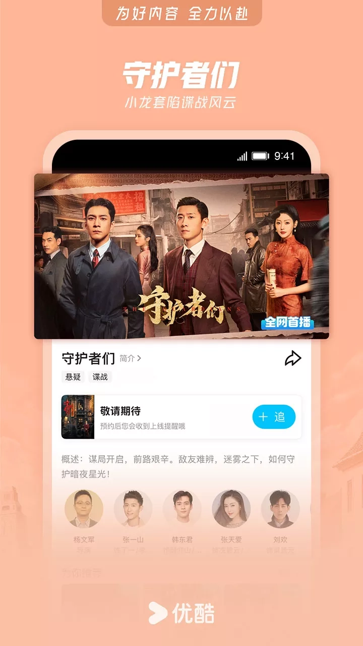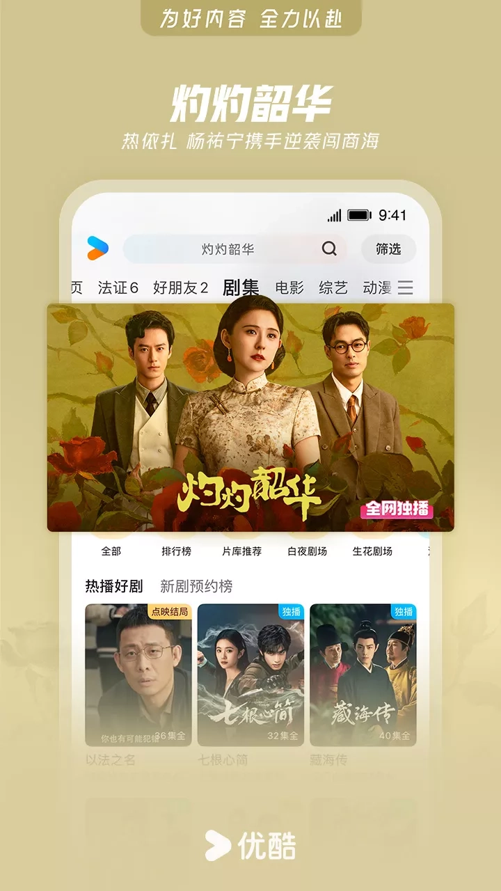 【精品内容,尽在优酷】 《灼灼韶华》热依扎、杨祐宁携手逆袭闯商海 《守护者们》龙套演员误入谍战迷局,结识爱国志士,以命布局联手抗敌 《绝命法官》正义法官张家辉为护子堕入犯罪深渊 《师兄啊师兄》神仙年番看师兄!苟道成圣,稳到飞起 《王牌对王牌9》王牌家族爆笑回归,新老好友已就位等你入席 《黑白局》杨旭文x王砚辉 联手破案斗毒枭 《巨塔之后》宣萱打响豪门继承之战 《炙热游戏:百厨大战》与潘玮柏岳云鹏一起见证“年度厨王”诞生 《献鱼》陈飞宇X王影璐 魂穿少女攻略魔头师祖 《凡人修仙传》爆款IP!杨洋热血修仙逆天改命 《我在顶峰等你》少女重返青春逆袭改写人生 《哪吒之魔童闹海》哪吒涅槃重生高燃之战 《我赞红人》年度红人巅峰之战来袭 《神墓 年番》脱胎换骨!辰南以己魔血染青天 《樱桃琥珀》纯爱无敌!赵今麦张凌赫青春甜恋 《以法之名》年度狠剧!张译扫黑除恶掀司法黑幕 《云深不知梦》大女主复仇爽番来袭! 《水饺皇后》马丽卖水饺上演励志人生 《七根心简》刘浩存宋威龙共解心简之谜 《麻花特开心2》沈腾马丽“穿越”IP世界爆笑团建 《制暴:无限杀机》:硬汉斯坦森孤胆杀穿黑帮 《闪光的夏天2》韩红带队加盟,72小时创作燃唱今夏 《藏海传》全员狠人!灭门案引连环杀局 国内外大剧热综、扎堆院线影片、二次元热血动漫……看视频,用优酷APP 【简介】 兼容Phone和Pad设备。优酷中国知名视频网站,优酷App为7亿用户提供电视剧,电影,动漫,音乐,新闻,娱乐,游戏,原创搞笑等海量影视,高清流畅播放,极速离线缓存,支持微博、微信、朋友圈一键分享。强大搜索功能,优酷在手,应有尽有! 【温馨提示】 期许与鞭策,只为更好的起航!当您使用中如有任何疑问或想吐吐槽,都热忱欢迎您致电我们:400-810-0580(或通过“APP-设置-问题反馈”专属通道留言),优酷君一如既往在等你! 同时,优酷君也期待您脑洞大开的创意与想法,为我们建言献策,凡经采纳即赠优酷定制精美礼品一份哦!