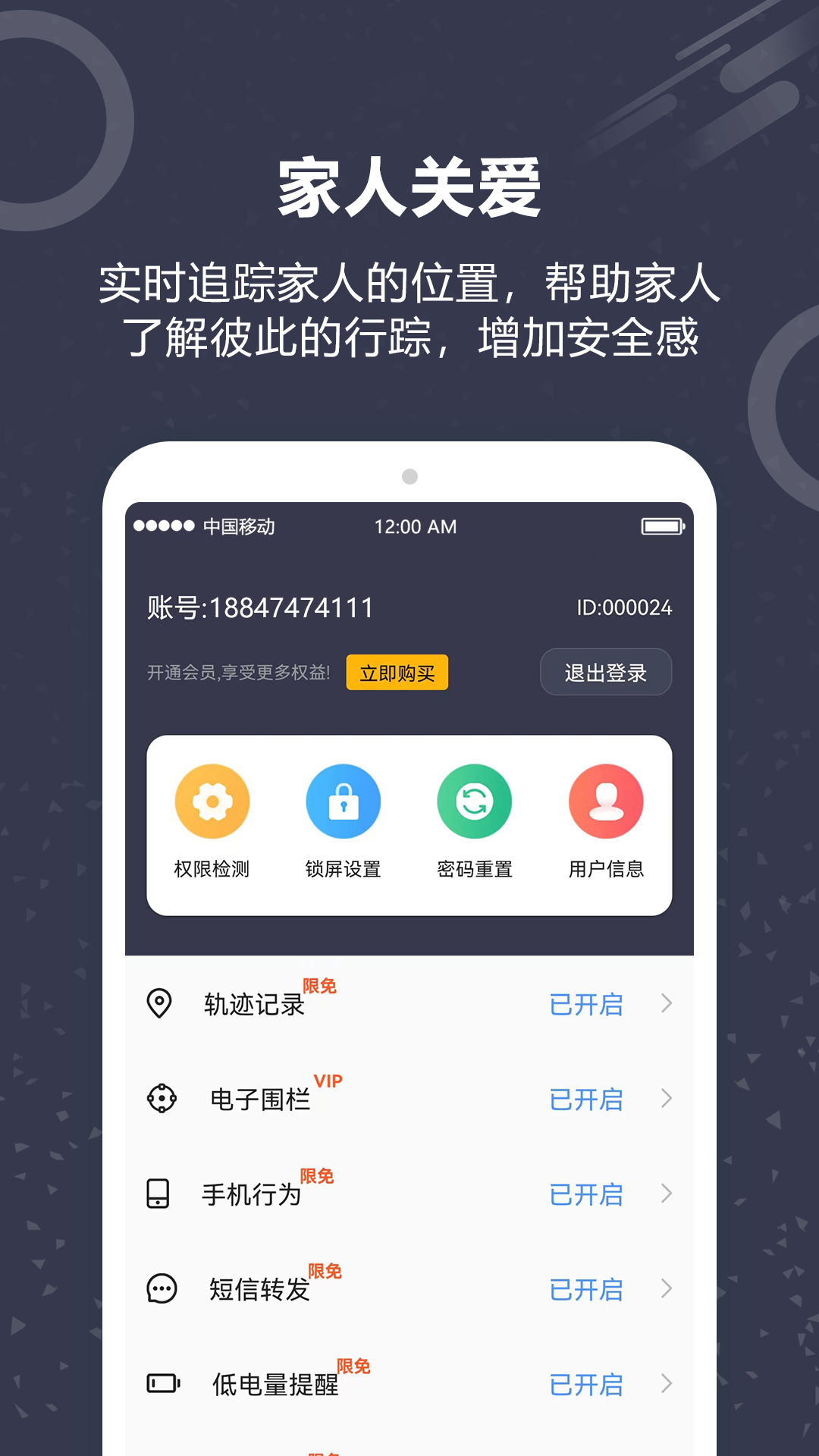 本应用是一款为了守护亲友及情侣安全而设计开发的共享位置应用,请注意本应用不支持苹果系统,且功能需要双方均下载、安装、注册、购买、同时在线、并同意授权后才可共享位置等信息,您和您的亲友均需要购买付费会员服务。通过应用便可实时掌握对方共享的位置信息和其他信息,在遇到危险的时候能够发起一键向家人发出求助,贴心守护亲友的安全。 由于本应用功能存在较多限制及门槛,我们为每位用户提供了售前免费试用功能,请先试用及体验我们的功能、说明、协议后,满意并符合您的需求,才购买本应用的付费会员服务。 【主要功能】 1、共享位置:查看亲友共享的位置信息,实时守护对方; 2、一键求助:当遇到危险时,一键向家人发出求助信息; 3、历史信息:面对突发事件,查看亲友的历史共享位置; 「技术亮点」 支持GPS、基站、WIFI多种定位方式,低流量、低功耗、毫秒级响应,"室外"可实现误差100米左右,支持多人同时共享信息,可保留近30天的行程信息。 【使用场景】 - 双方提前安装并使用及授权后,可以保护孩子防走失; - 双方提前安装并使用及授权后,可以情侣间共享位置; - 双方提前安装并使用及授权后,可以保护父母安全; - 双方提前安装并使用及授权后,可以保障您的安全; - 双方提前安装并使用及授权后,可以保障出差旅行安全; - 双方提前安装并使用及授权后,可以防止手机被盗; 「注意事项」 1、本应用不支持苹果系统,且功能需要双方均下载、安装、注册、购买、同时在线、并同意授权后才可共享位置等信息,您和您的亲友均需要购买付费会员服务。 2、需要授权位置(定位)权限; 3、需要打开位置(定位)功能; 4、需要打开精确位置(定位)功能,仅限于部分设备或系统; 5、需要双方“前台持续”和“后台持续”运行本应用,才能持续获取位置数据,否则位置数据将不准确或获取失败; 6、部分功能会持续使用位置定位服务的权限及功能,需要开启[始终打开]"位置(定位)权限及功能",否则位置数据将不准确或获取失败; 「特别声明」 1、应用功能免责声明:本应用不支持苹果系统,且功能需要双方均下载、安装、注册、购买、同时在线、并同意授权后才可共享位置等信息,您和您的亲友均需要购买付费会员服务; 2、恶意账号免责声明:禁止未经对方同意及授权的情况下使用,仅可用于家庭/亲友/熟人/朋友间使用,如发现有违规行为立即冻结账号,相关会员费用不予退还; 3、电池使用免责声明:部分服务会持续使用GPS位置定位服务,相比其他操作会消耗更多的电量,并影响电池续航时间; 4、位置精度免责声明:本应用通过第三方地图SDK获取移动设备的位置,由于第三方地图SDK的稳定性或其他问题、移动设备的网络/卫星/服务器/权限等各种不稳定因素,将可能导致移动设备出现位置有偏差的情况,本应用获取的位置信息仅为移动设备的当前位置提供大致范围及方向的参考,本应用不承担移动设备的位置精确度相关的责任。 「联系我们」 若在使用过程中遇到问题及建议,请联系我们,客服会尽快时间给您反馈,您的反馈是我们前进的动力!