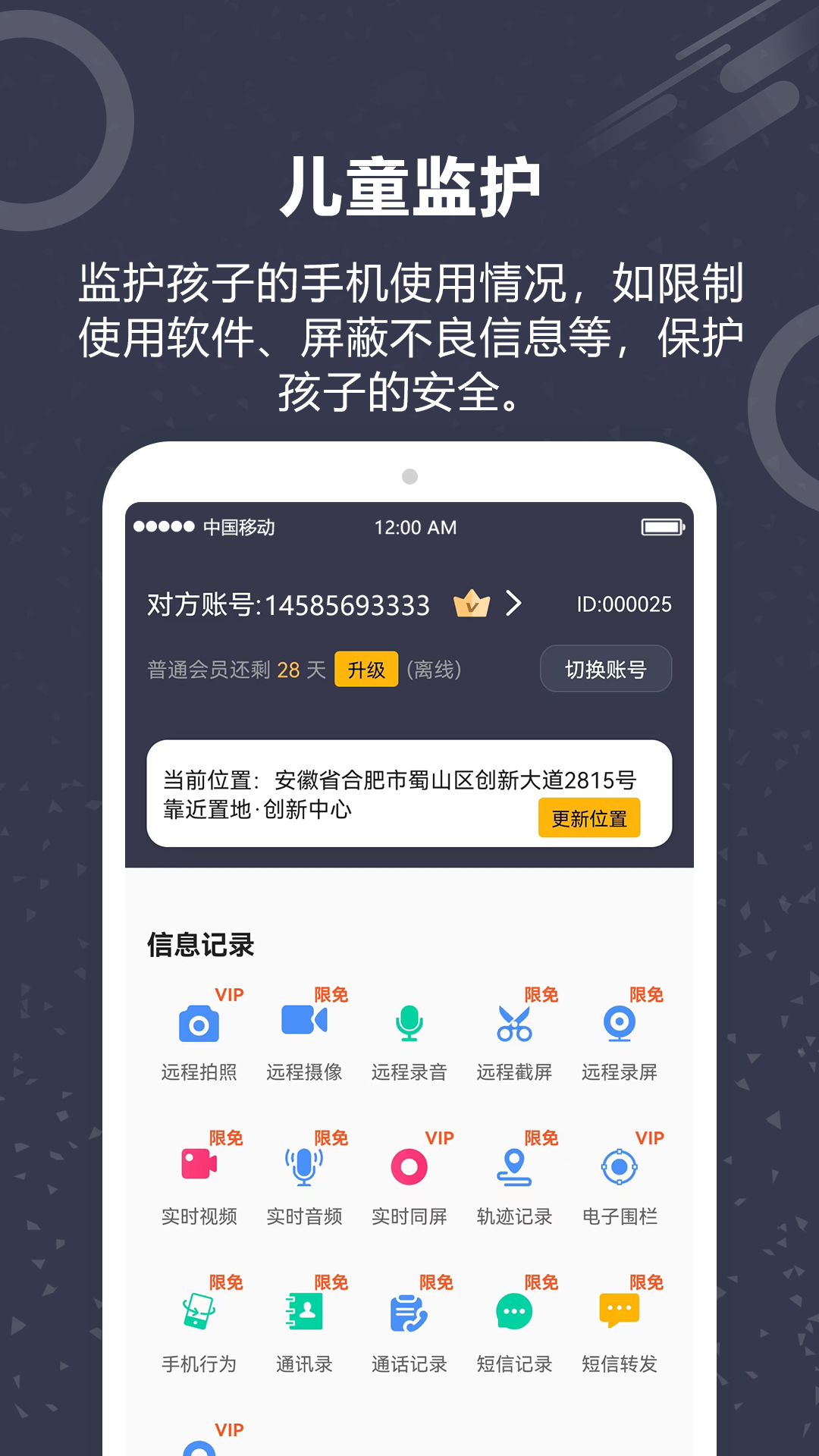 蜂鸟手机定位是一款功能强大的手机定位应用。无论您是想防止手机丢失,还是希望监护未成年人的行踪,蜂鸟手机定位都能满足您的需求。 蜂鸟手机定位的核心功能包括手机实时定位、轨迹回放、电子围栏、远程拍照、远程录音、手机挂失、远程备份和电量提醒。通过手机实时定位功能,您可以随时随地知道手机的准确位置,无论是自己的手机还是监护对象的手机。轨迹回放功能可以帮助您了解手机的行踪轨迹,让您更加了解手机的使用情况。 电子围栏功能是蜂鸟手机定位的一大亮点。您可以设置一个安全区域,一旦手机离开该区域,您将立即收到提醒。这对于监护未成年人来说尤为重要,可以确保他们的安全。 远程拍照和远程录音功能可以让您通过手机远程控制拍照和录音,无需亲自操作手机。这对于防止手机被盗或者监护对象的安全非常有帮助。 手机挂失功能可以帮助您在手机丢失时迅速找回手机。您可以通过远程指令锁定手机、清除手机数据或者发出报警声音,保护您的个人信息不被泄露。 远程备份功能可以帮助您将手机中的重要数据备份到云端,确保数据的安全性和可靠性。 蜂鸟手机定位还提供电量提醒功能,让您随时了解手机的电量情况,避免因为电量不足而影响使用。 蜂鸟手机定位是一款功能全面、操作简单的手机定位应用,适用于各种应用场景,包括手机防丢失和未成年人监护。无论您是个人用户还是家庭用户,蜂鸟手机定位都能为您提供全方位的手机定位服务,保护您的手机安全和家人的安全。