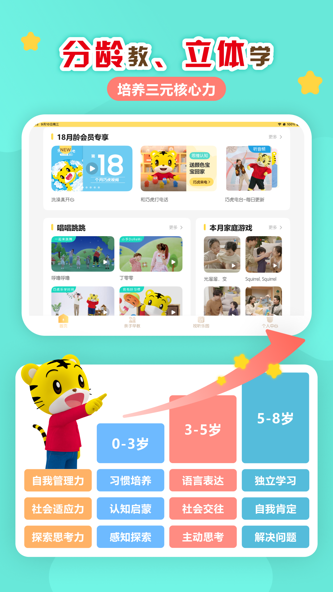 巧虎官方-专业分龄分级早教儿童启蒙<br>巧虎官方App,专为 0~8 岁儿童量身打造的分龄分级的在线家庭教育服务平台。通过权威性、专业性、海量性、联动性、精准性的内容和服务,为累计600万巧虎会员提供优质的教育理念与实践,进而成为中国儿童健康成长的独特标识的学习来源。<br><br>每天15分钟,和巧虎开启有趣益智、妈妈省心的早教之旅!<br><br>【核心亮点】<br>1、专业研发团队,精品内容有保障:<br>-自主研发的亲子互动、视频、音频、服务等功能模块,与中国中福会出版社丰富专业的线下出版物联动。<br>-特聘请美国哈佛大学、华东师范大学教育系教授为顾问,共创原创视频、音频、文章。<br><br>2、符合宝贝认知规律,吸收效果好:<br>-研发与孩子的年龄相结合、个性化、分龄的线上学习方式,利用线上平台的优势突出沉浸式视频学习和趣味互动,帮助培养孩子“三元核心力”素养,帮助家长树立先进的家庭教育的新理念新实践。<br><br>3、板块内容螺旋型递进,助力宝贝每月成长:<br>-结合每月主题商品和各大版块(亲子早教/阅读·逻辑、视频乐园、音频馆、每日推荐等)为您提供全方位的育儿支持,成为您专属的育儿加油站。App内容精选更新,每月精彩不重样,带给宝贝满满收获。<br><br>【巧虎荣誉】<br>2024年央广网-公信力教育品牌<br>2023年央广网-家庭教育榜样品牌<br>2021年央广网-口碑影响力教育品牌<br>2021年腾讯教育-综合影响力标杆教育集团<br>2019年第三届中国品牌大会-中国教育行业创新十大品牌奖&中国消费者放心品牌<br>2019年网易教育-年度综合实力教育集团<br>2018年天猫母婴玩具行业-年度最受消费者喜爱奖<br>2017年中国孕婴童口碑之星-妈妈最信赖品牌<br>2016年“回响中国”腾讯教育年度总评榜-社会影响力儿童教育品牌<br><br>【欢迎联系】<br>官网:https://www.qiaohu.com<br>微信公众号:巧虎乐智小天地<br>官方电话:800-820-5099