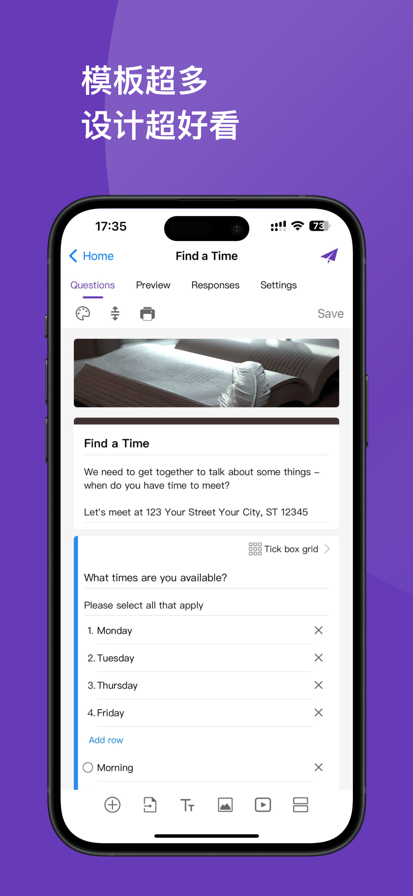 在 iPhone 上管理 Google 表单,从未如此简单。 无论你是正在出题的老师、收集客户反馈的商家、追踪报名情况的活动策划人,还是需要快速发起调查的研究人员——Forms for Google Drive 让你随时随地掌控 Google 表单的一切,无需打开电脑。 【用 AI 快速创建,80+ 模板随选随用】 内置 AI 辅助功能,只需描述需求,几秒内自动生成完整问卷框架。同时提供 80+ 精美场景模板:课堂测验、期末考试、员工满意度调查、产品反馈、市场调研、活动报名表、医疗问诊登记、订单收集……涵盖教育、职场、商务等几乎所有场景。支持 10 种题型:单选、多选、简答、段落文字、下拉菜单、线性刻度、评分量表、日期、时间、文件上传。支持拖拽排序、插入图片/视频、自定义主题颜色和背景。 【教师与学生:课堂管理的全能助手】 出随堂测验、期末考试、选课报名表、社团登记表、家长问卷——全部在 iPhone 上完成,无需打开电脑。为每道题设置分值,标注标准答案,开启自动批改:学生提交后即时显示得分,无需手动批改。设定答题截止时间,到点自动关闭收集。生成专属二维码展示在课件上,学生一扫即答;学生可用任何设备作答,无需安装额外 App。老师在 iPhone 上实时查看全班提交进度和每位学生的得分,谁还没提交一目了然。支持与 Google Classroom 连接,直接将表单布置为课堂作业。 【职场必备:企业调查与团队协作】 发起员工满意度调查、绩效反馈、入职登记、年度考核问卷——Forms for Google Drive 提供企业级的表单管理能力。邀请同事为协作者,多人实时在线共同编辑。每个表单可单独设置通知开关;设定回答时间段;限制最大回答人数(额满自动关闭);配置条件跳转逻辑,根据受访者回答动态展示相关题目,减少干扰,提升完成率。 【实时通知 + 美观图表 + 灵活导出】 每当有人提交表单,立即收到 iOS 推送通知,随时掌握动态。回答自动生成可视化图表,支持汇总视图、题目视图、个人视图三种模式,并按日期、邮箱、分数筛选。一键导出为 Google 表格(实时同步)、CSV 或 Excel(XLS),支持打印完整回答报告。 【多渠道分享,触达目标受众】 生成个性化二维码,印在海报、名片或课件上,扫码即达表单。支持通过微信、邮件、WhatsApp、Slack、Facebook、Instagram、LinkedIn、iMessage 等平台一键分享。可将表单链接嵌入网站;设置仅限特定邮箱域名填写;或限制每人只能提交一次。 【与 Google 全生态无缝融合】 与 Google Drive、Google 表格、Google 文档、Google Classroom 深度整合。直接在 Drive 中打开已有表单并用 iPhone 随时编辑,改动即时同步到所有关联设备。支持从现有表单批量导入题目复用。支持多 Google 账号切换,个人账号与公司账号互不干扰。 免责声明:本应用为独立第三方应用,与 Google 无关联。所有商标归其各自所有者所有。 服务条款:https://gformsfree.com/Terms.html 隐私政策:https://gformsfree.com/PrivacyPolicy.html 联系我们:blueberryjamapps@gmail.com 订阅方案:$5.99/周 · $59.99/年 · $99.99 终身买断 购买确认后从 iTunes 账户扣款。订阅自动续费,如需取消请在当前计费周期结束前至少 24 小时前往【设置→Apple ID→订阅】操作。