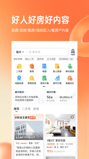 真实房源交易,整装家居服务,幸福安居让家更美好 提供全面真实实时的房源动态、高效的找房工具、省心的一站式整装家居等特色服务 产品亮点 【海量房源】二手房、新房、租房、商铺办公等真实房产信息,您想要的都在这里 【家装服务】整装、定制、软装、家电及局部翻新,可整装可零售,让您一站实现家的美好 【V R 看房】给你真实的信息与身临其境的看房体验,让找房更高效 【搜索查找】高效的房屋买卖搜索系统、地铁找房、画圈找房,支持多维度的复合搜索,快速高效让找房买房更便捷 【房屋预估】提供专业的二手房,新房等房屋估价信息,房源挂牌和成交价格信息,让您更好的了解房价及房产行业动态 【看点信息】全方位覆盖二手房、新房、租房、装修等百科知识库,市场行情、政策规划,您想看的这里都有