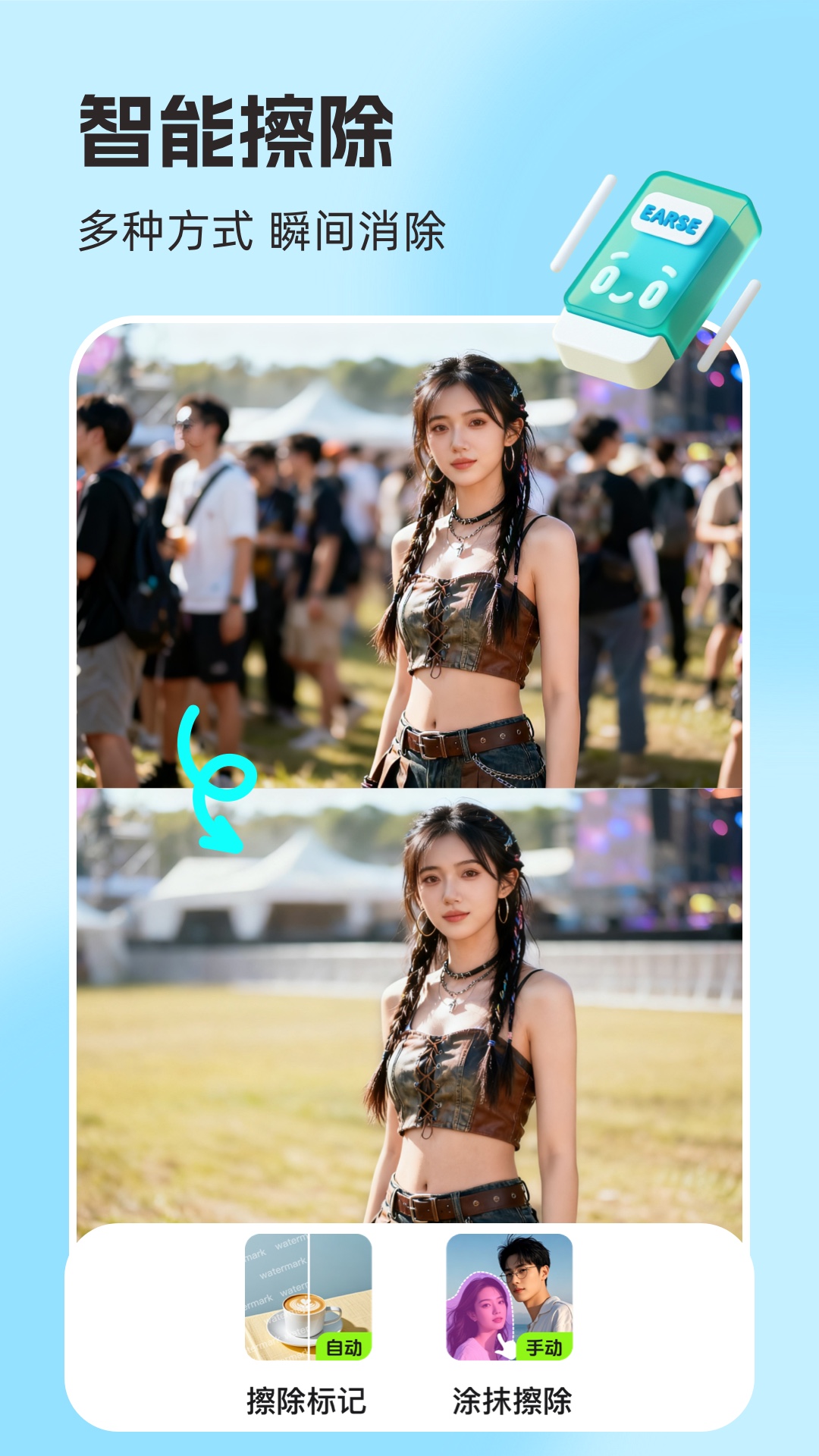 全球超受欢迎的图像处理App!便捷又全能,轻松修出高级感!!<br>安卓装机必备!大牌明星博主都爱用的高清AI修图修live实况剪片神器!<br>【全能修图】简单便捷无需切换,满足各种修图需求。美图配方汇聚流行图片视频玩法。专业滤镜调色工具,应对不同场景。<br>【AI闪光灯全新登场】<br>夜拍不怕暗,逆光也有救。<br>AI人脸识别x自动提亮肤色。自然修复面部过曝、光线不足人脸发黑。<br>昏暗环境也能拍出氛围质感大片!<br>【人像美容】肤色美白、面部丰盈、瘦脸瘦身、自然美妆、智能美发、增高塑形、面部重塑、共享修图…AI智能驱动,像素级美容精修。<br>【拼图神器】海量风格模板,照片视频都能拼,日常快速拼图,一键高清导出!<br>【高清相机】实时滤镜调色,苹果模式还原美貌,还能拍实况!动态AR让自拍更有趣!<br>【视频美容】视频高清人像精修,像修图一样修视频!做你的视频Live颜值搭子~<br>【视频剪辑】功能简单0门槛,视频大片轻松剪!AI智能画质修复,视频图片都清晰。<br>【美图AI全家桶】AI绘画实现绘画自由、AI修图智能修图不费力,AI美容懂你的美容助手,AI视频处理智能高效。<br>==== 联系方式 ====<br>微信官方公众号:meituxiuxiu<br>微博官方帐号:@美图秀秀<br>反馈邮箱地址:support@meitu.com<br>App内反馈方式:我-设置(右上角)-帮助与反馈-意见反馈/在线咨询