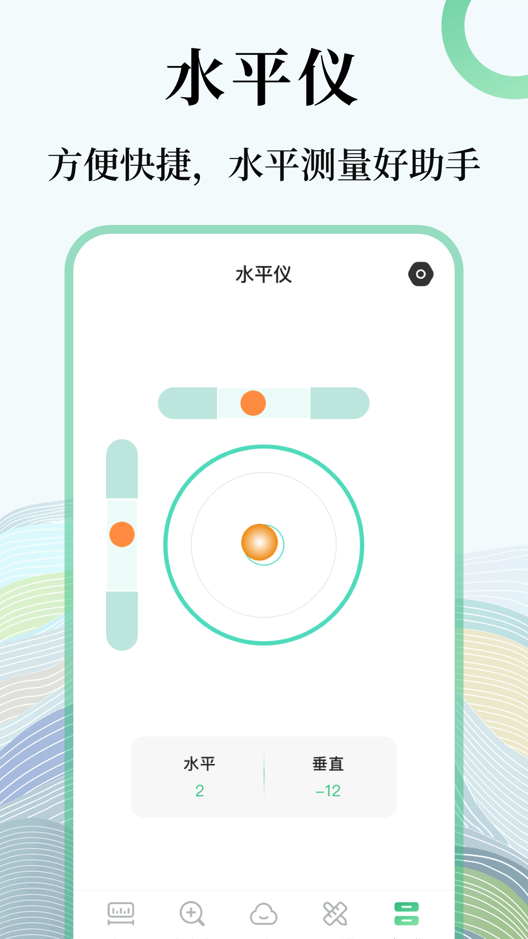 无论您测量什么对象——桌子的大小、墙壁的高度或一幅画的大小——AR 都能将你的智能手机变成一个虚拟卷尺。您不再需要携带卷尺或尺子来测量某些物体——用手机来做吧!<br><br>使用 AR水平仪,您可以水平和垂直测量物体的长度、高度、面积。所有这些都会一个简单直观的用户界面中展示,使数字测量更快速和便捷。<br><br>包含尺子、AR测量、量角器、水平仪、指南针、镜子等功能:<br>直尺:支持厘米和英寸,并且支持累加测量,省去人工计算麻烦<br>AR测量:进入AR测量工具,即可体验AR测距,测量两点之间的距离从此变得如此简单!测距线会在真实场景中建立起来哦~<br>水平仪:将手机放在被测试物体上,可获取水平偏差测量。同时满足垂直物体的水平测量<br>手电筒:点击即可开始手电筒模式,帮你照亮黑暗<br>天气:未来24小时天气预报、一周天气、十降水概率、空气质量、pm2.5、污染指数、风力指数等保障您的生活!<br><br>立即试用 AR水平仪,测量从未如此简单!