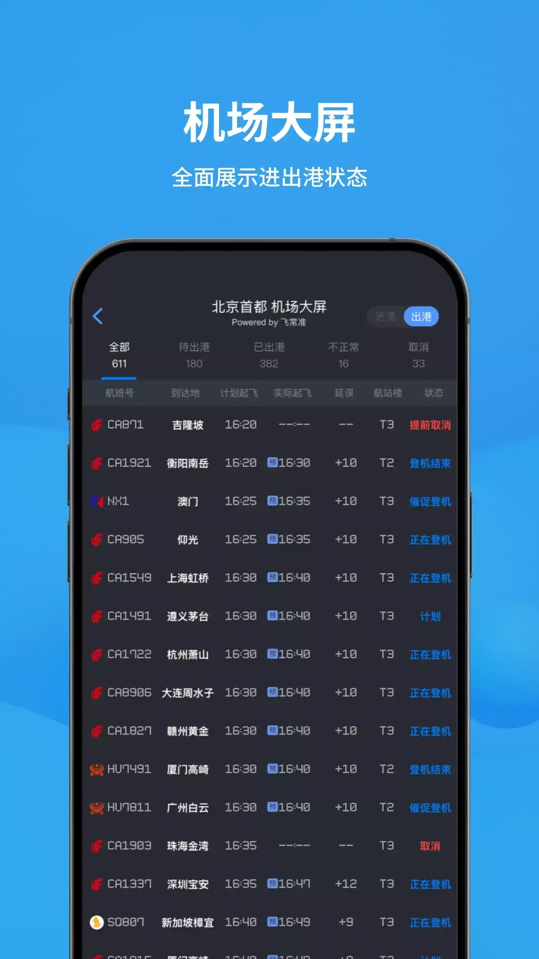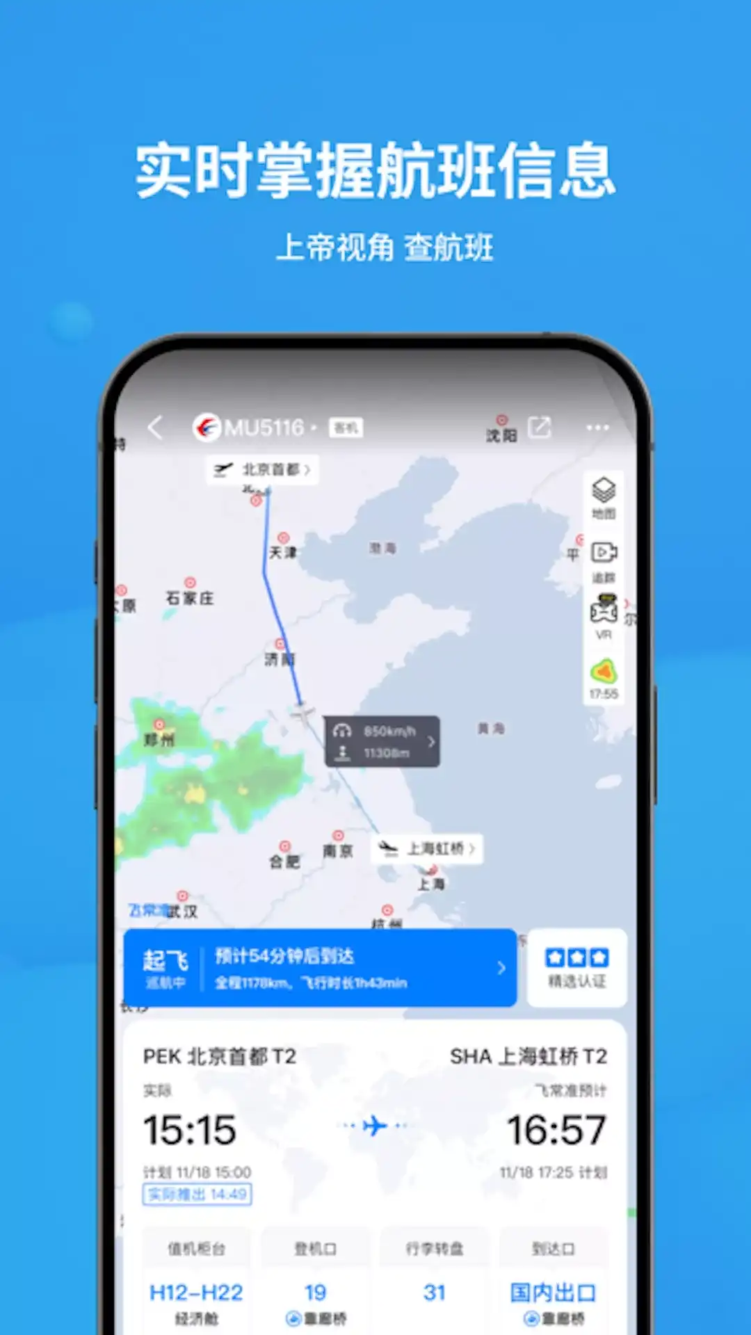 超3亿用户正在使用的出行APP 湖南卫视《天天向上》栏目强力推荐 查航班、值机选座、预定机票/火车票/酒店/接送机享返现服务 【产品功能】 精准航班动态提醒:预估航班起降时间,便于乘机人、送机人能一手掌握航班的最新动态,便于接机人合理安排前往机场接机的时间。 航班延误提前知晓:多维度的专业延误分析,让您直观了解航班延误的原因。 手机值机提前选座:支持各大航空公司的网上值机服务,提前选好心仪座位。 飞行行程全记录:航班信息自动导入,贴心管理您国内、国际飞行记录,随时查看年度排名,与飞友一较高下。 出行服务享返现:预定机票/火车票/酒店/接送机每单都返现,还有更多出行礼包,出差越多赚得越多。 机票购买,专业搜索: 更专业的机票搜索引擎,订票前可了解航班平均延误时间、靠廊桥概率、航空里程数等更多航班数据。 全方位的行程管理——支持添加航班、高铁、酒店和事件行程,便捷管理您的行程。同时支持行程共享给他人。 全球航班动态数据——每天更新全球超过98万个航班,每秒钟更新近100个航班,提供权威、准确、及时的全球航班信息。 【联系我们】 感谢您使用飞常准,使用中有任何问题可直接在“我的—意见反馈”中进行反馈,我们将在第一时间内进行处理,也可以通过以下方式进行反馈: 客服电话:4006-350-787 工作时间:7:30-00:00 官方用户QQ群:274299615