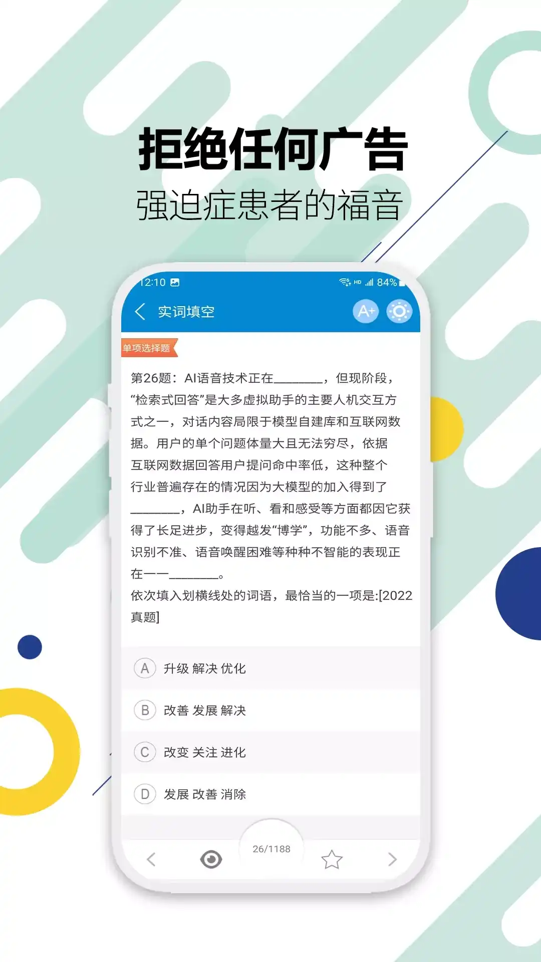 法考考试宝典 用户喜爱的刷题APP,考生推荐使用。 刷题,模考,学习计划,能力测评这些都能满足你! 软件特色 ●海量试题库:章节练习、历年试题、高频考点、模拟试卷、综合练习等全方位强化分类学习 ●高频考点,核心考点,能力测评,大数据技术全面击破薄弱点,定制专属学习计划 ●答题解析,试题讨论,答错答对有专家帮忙解释,深入掌握试题,还有百万考生精彩评论 实用功能 1自动汇总错题,汇总其它考生错题 2智能评估阅卷,快速查看成绩 3收藏薄弱试题,随时排查重做 4抽题组卷,模拟考场,积累实战经验 5掌上笔记,我的笔记,大家的笔记 6试题讨论精华,考生精选试题讨论,助力试题解惑 学习方便省时 学习时间、地点不受限制,电脑、手机、平板、多终端同步学习,任意切换使用。 出品:英腾智库教育科技(北京)有限公司 全国免费客服热线&QQ:4007278800
