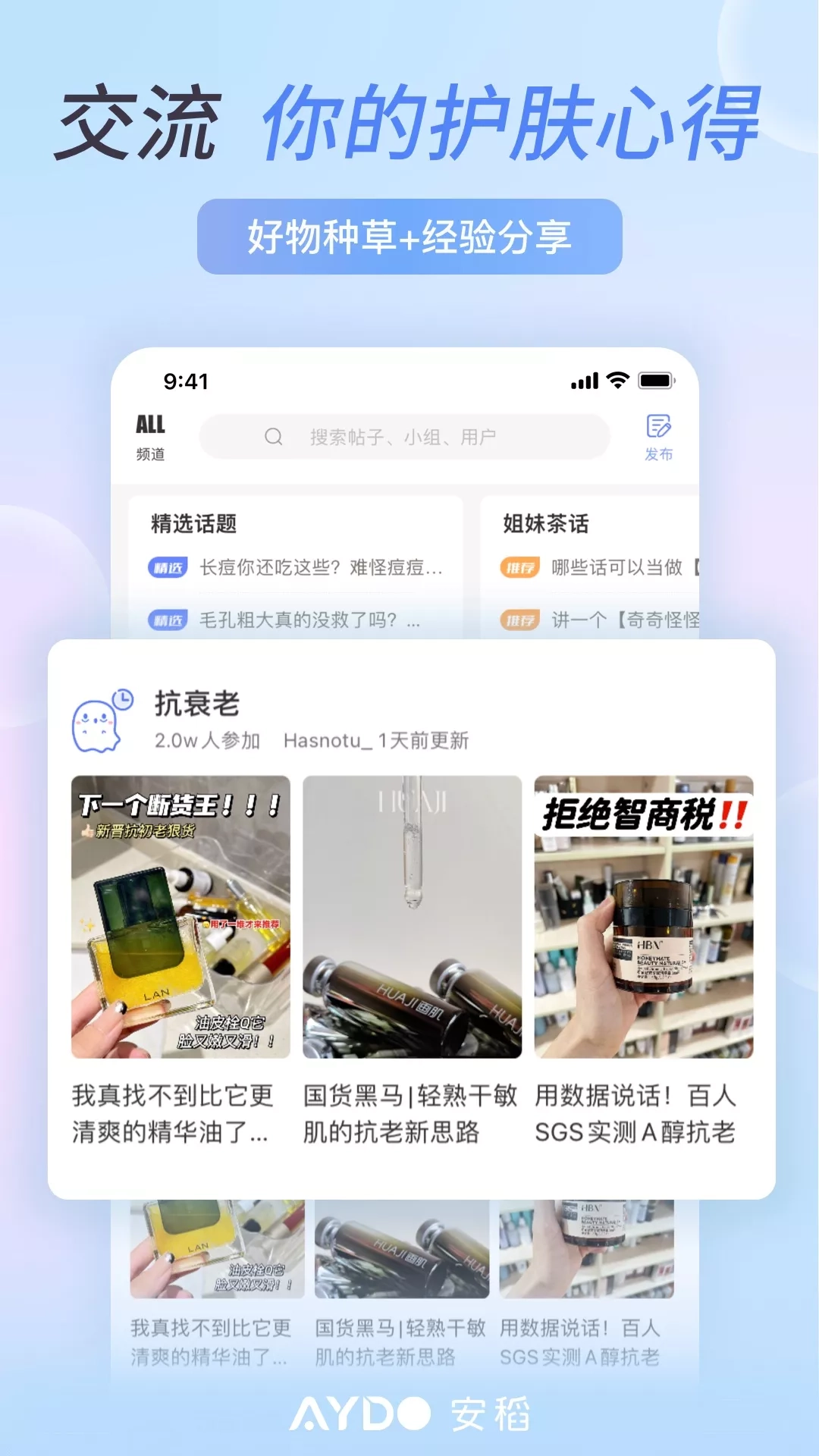 根据你的肤质推荐适合你的性价比超高护肤品~ 另有10元专区随便买,真是便宜大碗~ 护肤品成分分析+护肤品与肤质匹配+皮肤检测+肤质分型+护肤方案+一对一护肤咨询 【安稻护肤APP是什么?】 安稻护肤APP提供「肤质分型+护肤方案+一对一护肤咨询」的全套护肤解决方案,让你深度了解自己的肌肤,针对性地解决肌肤问题。新版本开放社区交流及海量知识库,让你轻松掌握系统护肤知识,成为全新护肤达人。 【用户心得】 以前买护肤品都是看博主或者朋友推荐,开始用安稻护肤之后,它会基于我的肤质和问题针对性推荐,不用再跟风乱买了。 干皮/油皮/敏感皮?以前我从来不知道自己的肤质,用完安稻护肤,第一次知道皮肤的类型,还会详细说明皮肤存在的其他问题。 现在用安稻测肤仪搭着安稻护肤APP,已经养成长期测肤习惯,一测就知道哪个产品对我有效,不再是凭感觉去猜。