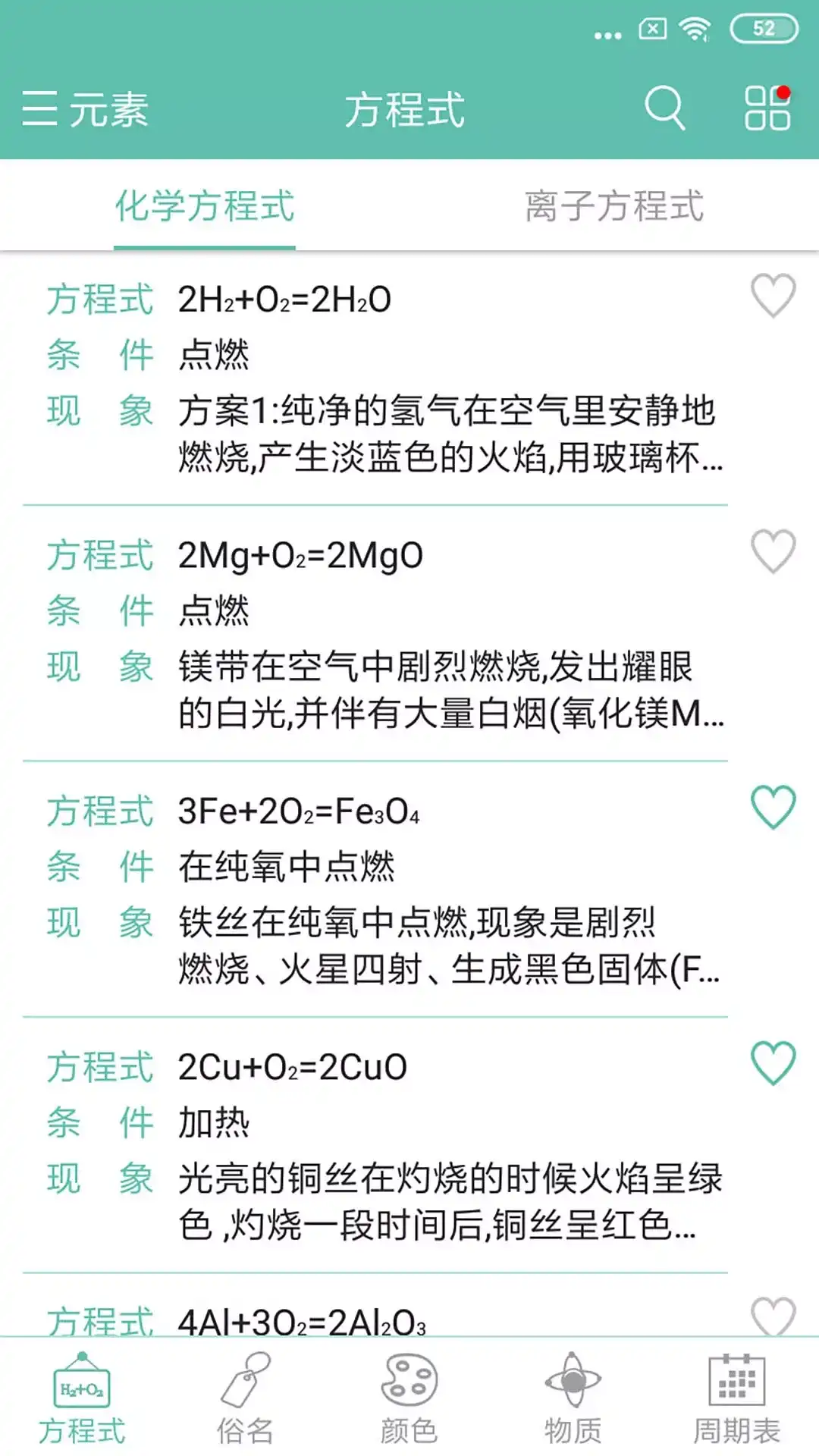 【软件简介】 化学方程式软件是为从事化学专业的用户开发的一款化学工具软件。化学方程式首页包含元素周期表、物质、方程式等模块。各模块循序渐进,相辅相成,可以更快速、全面的帮助用户提高对化学知识的理解;同时化学方程式具有查询方便、数据齐全、知识面广、连贯性强、讲解深入等特点,一直以来深受广大用户的一致好评。 【软件特色】 特色1:包含初高中教材中所有与方程式相关的知识点。 特色2:包含各省市历年与方程式相关考题的解说。 特色3:包含大学化学教材中的大部分基础表格数据。 特色4:包含丰富的化学工艺。 特色5:显示友好,查询方便。 特色6:数据持续完善、错误率极低。 【作者寄语】 化学是一门很神奇的学科,我们生活中的方方面面都离不开化学,化学的魅力之处在于她能够解释清楚我们所处环境中的各种现象与本质。希望本软件能够一直伴随大家的学习和工作生涯,本软件也将始终致力于“为大家提供便捷齐全的化学查询工具”为宗旨,持续丰富本软件的功能和数据。让我们携起手来,一起探索、共同进步! 【联系方式】 客服微信:benhs2017 客服邮箱:feedback@benhuisen.com