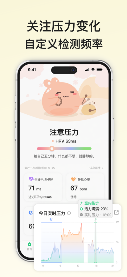 小乖解压 - 你的AI情绪伙伴,告别压力,停止内耗 在快节奏的生活中,压力无处不在,但仅仅知道自己的压力状态远远不够。小乖解压是一款结合 HRV(心率变异性)压力检测与可个性化设定的AI情绪对话的智能应用,每个人都能自由设定AI角色,可以是知心朋友、问题修复 - 修复了一个已知问题 非常感谢各位用户选择小乖解压!伙伴等不同对话风格,让解压体验更贴合个性需求。小乖解压不仅能精准监测你的压力水平,还能通过根据你喜好定制的AI角色进行对话,帮助你真正释放压力、停止内耗、找回轻松的自己。 市面上大多数HRV应用只能告诉你“压力大”,而小乖解压更进一步,我们不仅监测,更关心如何帮你化解压力。无论是焦虑、疲惫,还是情绪低落,小乖都会陪伴你,用科学的分析和符合你偏好的对话,助你找回内心的平静。 小乖解压 如何帮你舒缓压力 - 精准HRV检测:通过Apple Watch测量HRV,科学评估你的压力水平,让你清晰了解自己的身心状态。 - 专属AI情绪伙伴,随时倾听与回应:根据你设定的人设特征(温柔型/活泼型等)进行智能对话,在压力时刻提供个性化情绪支持,让你不再独自面对情绪低谷。 - 个性化解压:不只是聊天!小乖会结合你的压力数据,与你进行趣味对话,帮你快速调整状态。 - 多角色切换:可保存不同人设模板,根据需要随时切换你的专属解压伙伴。 - 长期记录压力状态,陪伴成长:记录你的HRV趋势和情绪变化,让你看到自己的进步,逐渐学会与压力共处,培养更健康的心态。 小乖解压 核心功能 - AI对话:真正懂你情绪的AI,会在最需要的时刻说出最懂你的话 - HRV手动测量:随时随地进行HRV检测,获取即时压力评估 - 高频HRV检测:后台持续跟踪HRV波动,构建您的压力变化曲线 - 健康数据整合:整合睡眠、步数、能量消耗等健康数据,全面解析您的身心状态 - 个性化表盘:丰富的Apple Watch手表小组件,让您的手表化身时尚单品 - 智能提醒:HRV压力状态提醒以及实时压力提醒 - 趋势分析:统计您每天的压力状态,发现您的最佳时段 小乖解压 会员功能 - AI记忆加强:支持会员的对话记忆轮次提升。 - AI聊天次数无限制:会员与AI聊天消息数无上限。 - 专属睡眠问候:会员可以在睡眠详情页查看个性化AI给自己的睡眠质量分析。 - AI消息推送:会员每日可以接收1次个性化的AI给自己发送的HRV状态关心消息通知。 - 日/周/月数据趋势:会员可以查看完整的每日、每周、每月压力趋势分析。 - 专属养生建议:会员可以在趋势页查看每日最佳时段与不佳时段,并查看对应时段的养生建议。 - 手腕温度分析:会员可以使用AI分析手腕温度推测经期,例如排卵日估算等。 - HRV趋势分析:会员可以查看HRV数值趋势。 - 查看实时压力:会员可以查看 6 分钟一更新的实时压力图表。 - 自定义HRV 频率:会员可以更改HRV计算频率至 6 分钟/次、15 分钟/次、30 分钟/次、1 小时/次、跟随系统。 - 会员专属表盘:会员可以使用APP内的所有表盘。 - 定时喝水提醒:会员可以设置每日定时喝水提醒。 付款将在确认购买时记入iTunes账户。订阅将自动续订,除非在当前订阅期结束前24小时关闭。账户将在本期结束前24小时内续费,并确定续费成本。订阅由用户管理,购买后可以到用户的“账户设置”关闭自动续订。 小乖解压 设计理念 我们相信科技的温度在于理解,而非仅仅测量。不同于传统HRV应用只提供冰冷的数据,我们更关注如何用AI的共情力为你提供真正的情感支持。小乖不仅是工具,更是懂你的伙伴,通过与你喜欢的角色对话、轻量化的解压互动和长期情绪陪伴,帮助你从压力中抽离,学会温柔对待自己。我们坚持:真正的健康科技,应该像朋友一样陪伴你成长,让解压成为一场轻松的心灵对话。 苹果健康数据集成 小乖解压通过苹果健康应用直接读取来自苹果手表测得的心率健康数据。为了获取心率、步数、能量消耗等数据,请授予苹果健康的读取权限,否则无法正常使用。 免责声明 小乖解压不是医疗设备,所有提供的信息和建议,不能用于医疗建议或诊断。如果您的身体长期处于压力过大的状态,请及时寻求专业医生的建议或帮助。 如需技术协助,请联系我们的团队: 隐私政策:https://dev.freenotetech.com/xiaoguai/policy/ 服务条款:https://dev.freenotetech.com/xiaoguai/terms/