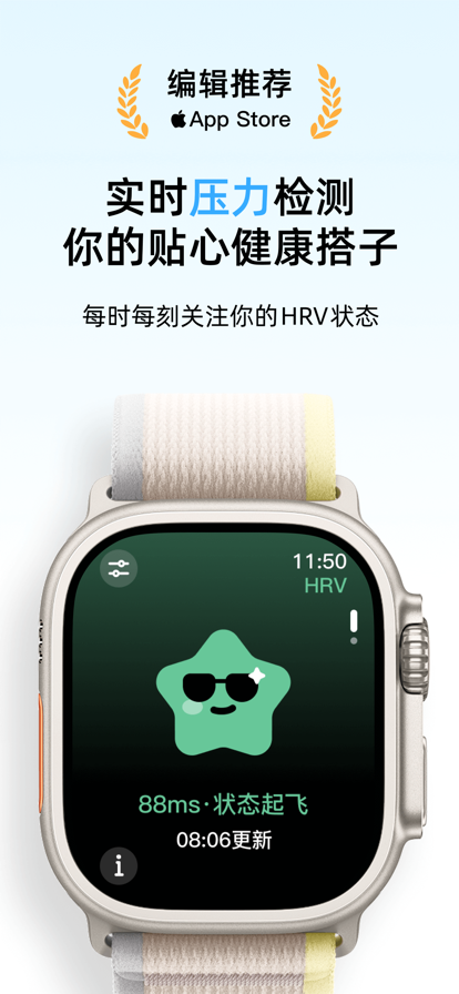 我们关心您的心脏健康,一款为保护心脏健康而研发的APP! *荣获App Store编辑推荐* 主要功能如下: 【手机测量心率】 手指轻轻放在手机上,就可以得知您的心率数据 【手表压力表盘】 实时追踪压力和身体指标 【HRV】 帮助获取你的HRV数据,查看应激水平 【压力】 时刻关注你的压力数据,了解自己的情绪压力 【血压记录】 帮助记录您的血压检测结果 【跟踪血氧】 帮助记录您的血氧饱和度 【心脏分数】 关注您的心脏状态 【心脏年龄】 了解您的心脏年龄 【睡眠监测】 关注您的睡眠质量,追踪睡眠情况,同时提供白噪音让您愉快入睡 【其它健康数据】 读取苹果健康数据,关注指标 【戒烟】 我们有专门的戒烟功能,记录您的焦油输入量 【待机状态实时更新健康数据】 该功能可以在待机充电的情况下实时看到自己的健康数据 【闹钟提醒】 帮助养成健康习惯 【大字体】 适配手机大字体,方便阅读 订阅相关: -确认购买后,将从您的 iTunes 帐户中扣除款项 -订阅会自动续订,在当前期限结束前24小时关闭则会取消自动续订 -免费试用期内再次续订或取消续订,不会向用户收回免费试用权益,用户可以继续试用直至试用周期结束 -隐私政策:http://singatop.com/Agreement/Privacy.html -用户协议:http://singatop.com/Agreement/UserAgreement%20.html 如果您有任何问题或者建议,可以在“用户反馈”进行反馈,我们会采纳合适的建议并回复您 免责声明: -本应用不是医疗产品,不能用于专业医疗用途,只是作为一般健康信息的来源,如作为健身用途 -不支持测量血压和血氧,只提供记录功能