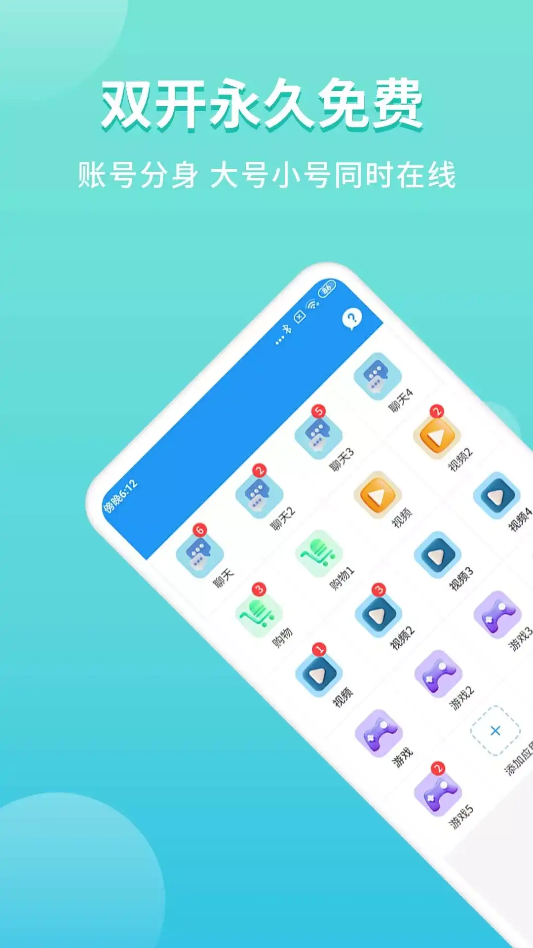 【快手、小红书达人推荐的分身多开APP】 微信用户口碑推荐微信分身、微信多开、微信双开软件,支持最新版64位微信,兼容安卓14,包体小更省手机内存,是目前市面上用户使用最多的应用分身类产品! 双开助手 2亿+用户使用的微信分身版、微信双开、微信多开、应用分身大师!官方正版不闪退、稳定流畅不卡顿!支持应用无限分身,快速添加桌面图标,消息实时收发。全新自研虚拟引擎,微信分身速度快!年度十大装机必备App之一! 【2015年】荣获中国手机产业年会 “年度手机应用”大奖 【2016年】荣获第七届中国移动互联网 “创新工具应用”大奖 【2017年】荣膺谷歌开发技术创新英雄榜产品 【2018年】荣获安卓绿色联盟“年度实用工具绿色应用” 【双开助手,官方推荐值得信赖】 1、免费应用分身双开,支持微信分身、微信双开、QQ、小红书等绝大多数应用分身双开! 2、无限应用分身多开,支持微信多开、QQ多开、抖音多开、游戏多开等绝大多数应用无限分身多开。 3、支持个性定制,如微信分身等均可自定义图标、名称并添加到桌面等。 5、应用锁、隐私空间、VIP客服、微信专清、换机数据迁移、主题换肤等超多原创功能!