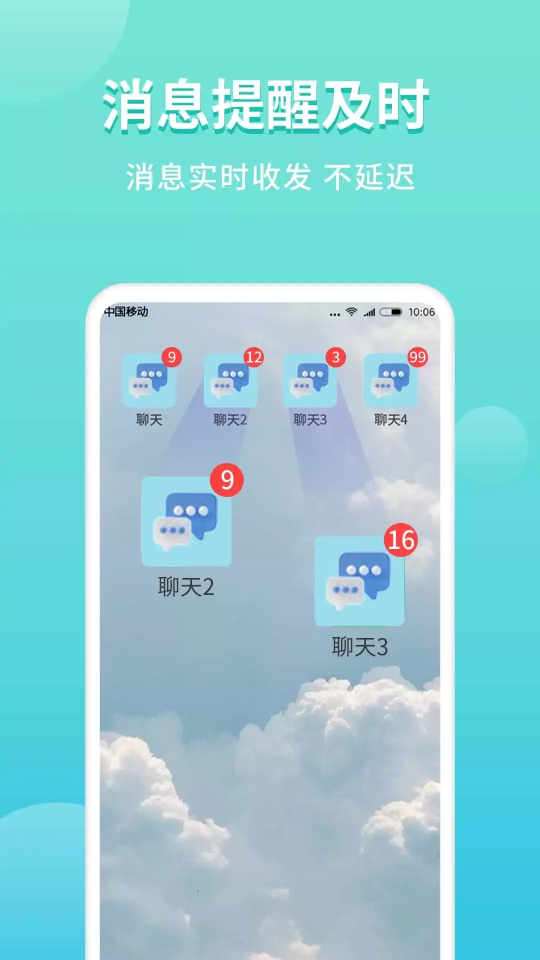 微信分身、微信双开、微信多开、微信分身版应用多开分身大师,更安全稳定不卡顿不闪退! 【免费双开】免费支持应用游戏双开分身,一部手机双账号同时在线,不用频繁切换账号,提高生活工作效率。 【无限多开】可无限多开分身几乎所有软件,每个分身独立运行,账号互不干扰,运用独立内存管理机制,分身再多也不卡顿不延迟。 【安全分身】采用应用级虚拟化技术实现应用多开分身,适配安卓13系统,不影响手机系统稳定性兼容性。 【消息提醒】应用分身体验与原生应用一模一样,可以同步及时收发消息,有消息红点标,来消息不会错过。 【桌面分身】双开、多开、分身的小号支持创建桌面快捷方式,分身放置桌面,开启更方便。 【自定义图标】创建的每个小号都能自定义名称和图标,不仅便于管理和识别分身大小号,不会开错号,还能变身隐藏,保护分身隐私。
