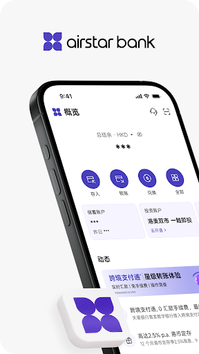 实力雄厚,资质合规<br>天星银行是由富途集团和小米集团为主要股东的香港数字银行,于 2019 年 5 月 9 日获香港金融管理局颁发银行牌照(银行代码:395)。天星银行始终坚守普惠金融理念,致力于借助金融科技,为每一位客户打造简易、灵活的银行服务体验。<br><br>便捷开户,极速体验<br>无需繁琐手续与耗时排队,最快五分钟手机开户*,流程简单,智能识别,极速审核,助您快速启用服务。<br>天星银行为香港居民和访港旅客¹提供香港银行服务,满足用户在港消费、理财等金融需求。<br><br>港美双市,一触即投<br>无需临柜, APP 线上开立投资账户;支持碎股交易,小资金亦可玩转港美股;超低费率,投资更省心。<br><br>全球汇款,迅捷通达<br>跨境支付通、汇款至中国内地、汇款至全球等多种汇款方式,到账快速,覆盖个人往来、家用红包、国际商务等多元场景,解决您跨境资金流转的各类需求。<br><br>Visa白金卡,彰显个性<br>天星银行Visa白金卡,自选卡面设计,使用实体卡于全球无忧提款。支持无触式消费,更可享用专属 Visa 礼宾服务²,为您的每一次消费增添尊贵体验。<br><br>多币管理,外汇随心<br>拥有港币 / 人民币 / 美元账户,满足您不同的储蓄与资产配置需求。提供全天候 24 小时外汇买卖服务,您可足不出户实时兑换港币、美元及人民币,根据自身需求与市场动态灵活调配资金,实现资产多元化管理。<br><br>转账支付,随心掌控<br>提供全天候 24 小时港币及人民币即时转账服务,打破时空限制,让资金流转随时响应您的作息。支持按需预约转账,确保准时还款不逾期,精准管理每一笔支出。<br><br>更多天星银行的服务及产品介绍可浏览:<br>www.airstarbank.com<br>1.访港旅客在申请开户时需身处香港境内<br>2.有关Visa白金礼宾服务,可从Visa网站了解更多<br>*受条款及细则约束,详情请浏览:<br>www.airstarbank.com<br><br>「Airstar Bank」手机应用程序仅供天星银行有限公司之客户使用。就天星银行有限公司未获发牌或授权提供服务的地区而言,「Airstar Bank」手机应用程序提供的内容及服务非为该等地区的人士而设。