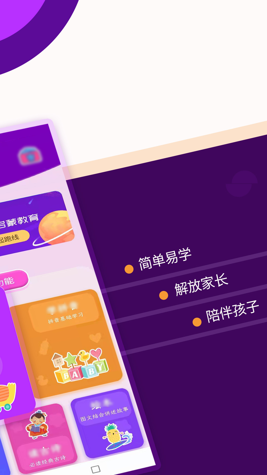 幼儿认字APP是专为2-10岁儿童量身打造的汉字启蒙学习工具,依托幼儿认知发展规律、识字敏感期特点,打破传统机械记忆模式,<br> 【汉字学习方法】<br> 1、以“趣味驱动、科学启蒙”为核心理念,让孩子在轻松氛围中建立汉字认知,夯实自主阅读基础,顺利衔接幼小学习。<br> 2、【卡片学习】:通过形象动画卡片展示汉字的图片、汉字、拼音。更有中文和英文双重读音。卡片根据生活场景类型进行分类,让孩子学习汉字起来不再混乱。<br> 3、每个汉字均配套“认-学-写-读-练”闭环环节,从发音认读、字形讲解,到笔画展示和跟写,再到扩展汉字的释义、详解、造句,由浅入深适合各种需求的宝宝。<br> 4、【汉字笔画笔顺】:每个汉字都有展示笔画书写步骤,可动动手指按照笔画笔顺实际操作书写汉字,帮助孩子理解汉字结构与含义,轻松学习汉字。<br><br> 【汉字拓展学习】<br> 1、【拼音学习】:APP包含所有的生母、韵母、整体认读音节,每个拼音有动画展示、书写笔画、语音朗读、组词等功能让孩子在轻松氛围中学习拼音。<br> 2、【古诗学习】:数百首常见故事,根据教学顺序由易到难排列,每首古诗有读音、拼音、译文、注释。让孩子从小就能轻松愉快的学习、理解、背诵古诗词。<br> 3、【故事学习】:APP收集了一系列经典故事,让宝宝能在睡前或闲暇时间听听古典故事,拓展知识面。<br> <br> 【拓展功能】<br> 1、在更多模块中有国学经典如【唐诗宋词】【成语典故】【三字经】【弟子规】【百家姓】【百科知识】等等大量的国学经典,可以帮助宝宝认识中华古代文化。<br> 2、【绘画】:只需要4步就能绘画出简单的图形,非常适合低年龄宝宝。<br> 3、【英语】:拓展英语学习模块,如单词卡片、英语绘本。<br> 4、【更多】:更多各种百科知识的讲解,可帮助宝宝了解百科知识。
