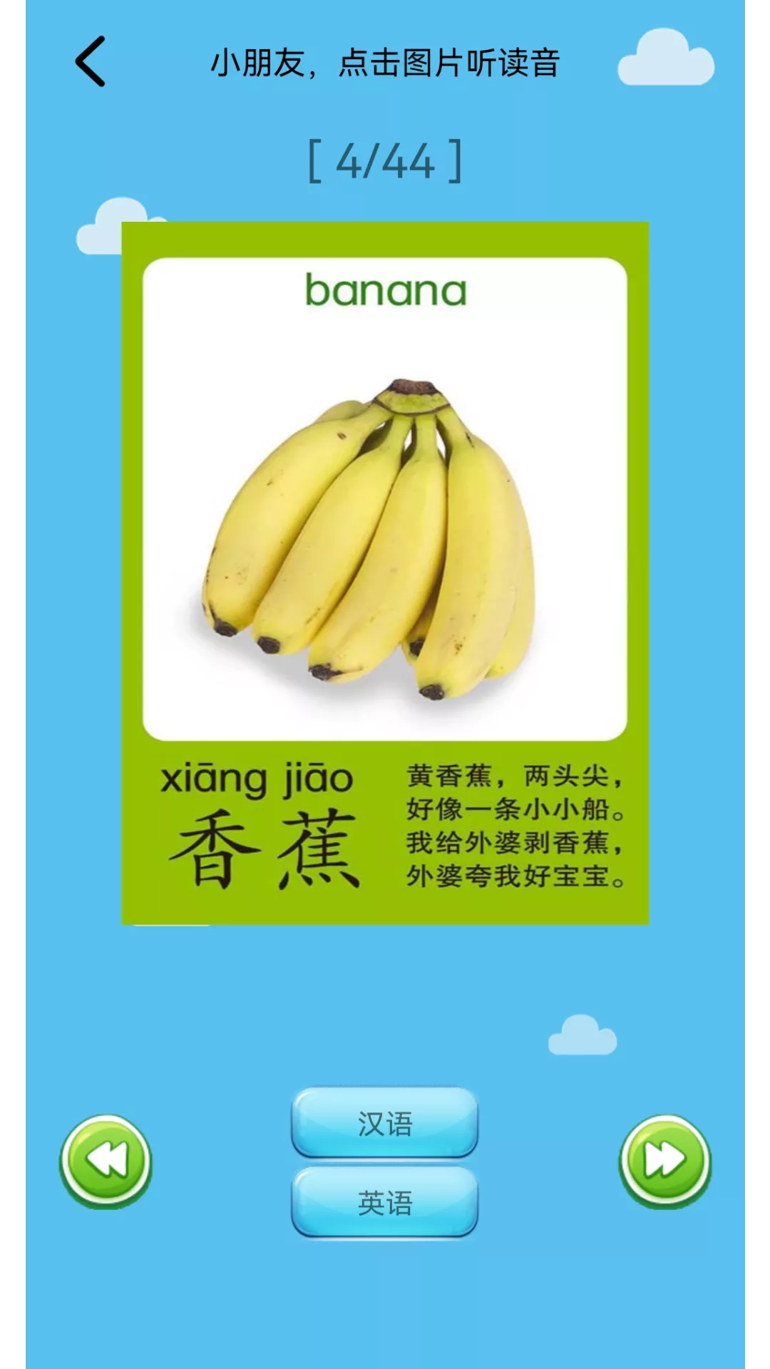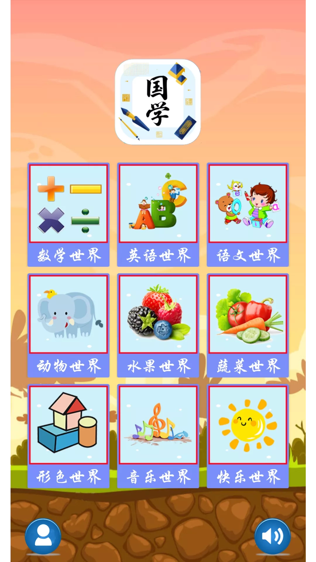 一款儿童学习、儿童教育的应用,包括数学、英语、语文、音乐、动物、水果等内容 产品主要功能: 1、数学世界,包括学数字、数数、加减乘除四则计算等小学数学的重要知识; 2、英语世界,包括26个英文字母的学习、日常生活英语单词的学习等; 3、语文世界,包括韵母、声母、拼音、写字等小学语文基础知识的学习; 4、动物世界,认识学习常见的动物以及了解对应动物的叫声; 5、水果世界,认识生活中常见的水果; 6、蔬菜世界,认识日常生活中常见的蔬菜; 7、音乐世界,包括学习基本的音符、认识乐器、学唱儿歌等; 8、形色世界,学习认知生活中各种形状和各种颜色; 9、快乐世界,打地鼠、小猪佩奇学拼图,让孩子在学习之余休息放松;