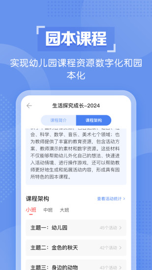 幼师贝壳,轻松备好课! 幼师贝壳以儿童发展心理学和《指南》为理论依据,从兴趣启蒙、主题教学为出发点,结合幼儿年龄、个体差异化等特征,打造出以领域知识为基础,结合能力培养、情景教学和主题任务的多媒体课堂模式和教学课程体系。包含精品幼教课件,主要包含:五大领域、兴趣启蒙、经典节日、特色主题等。 产品特色: 1、多元体系课程:根据小、中、大不同年龄段发展特点设计的高质互动课件1000+,涵盖幼儿园高频活动主题,同时提供安全教育、24节气、幼小街接等特色体系课程,实时紧跟热点,持续更新内容,满足老师五大领域教学所需; 2、海量电子素材:海量高清精品图谱,环创手工、纸面教具、调查表、海报、奖状、手指操、动面、古诗等素材,助力老师轻松备课; 3、备课云盘:幼师的私人云端资源库,贝壳平台资源一键转存、个人资料云端储存,配合在线编辑、播放等功能,实现在线教研,在线备课。 4、多端实时共享:资源课件可在电脑端、手机端、电视端实现数据同步,随时随地查看课件内容,多端协作更方便; 教学资源: 课程整合五大领域相关互动内容,打造出多元化体系课程,寓教于乐,促进孩子们全面发展。 1、通用主题课程:覆盖幼儿园